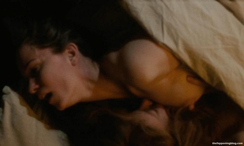 Katherine Waterston y Vanessa Kirby aparecen ambas topless en un montaje de escenas lésbicas en las que las chicas se besan y tienen sexo juntas en la cama. Vanessa es la de cabello más claro y rojizo, y Katherine tiene el cabello más oscuro.