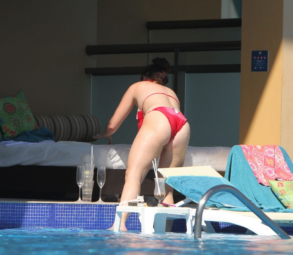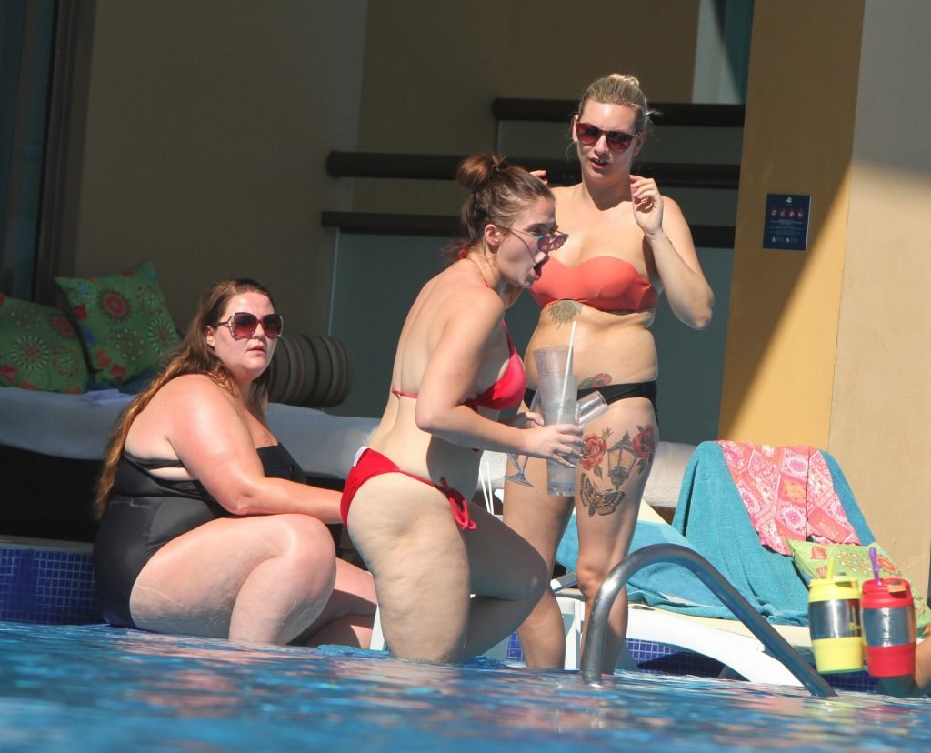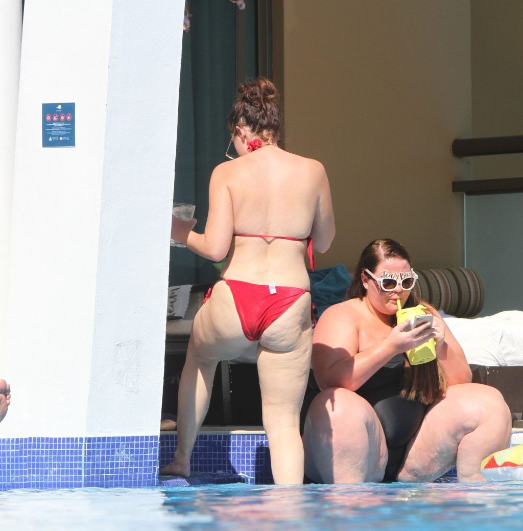 Vicky Pattison disfruta de un rato divertido bajo el sol con un bikini rojo en Tulum, México, 01/08/2019. La ex estrella de “Geordie Shore” de 31 años llevaba un bikini rojo sexy mientras era vista celebrando la despedida de soltera de su hermana Laura en la piscina.