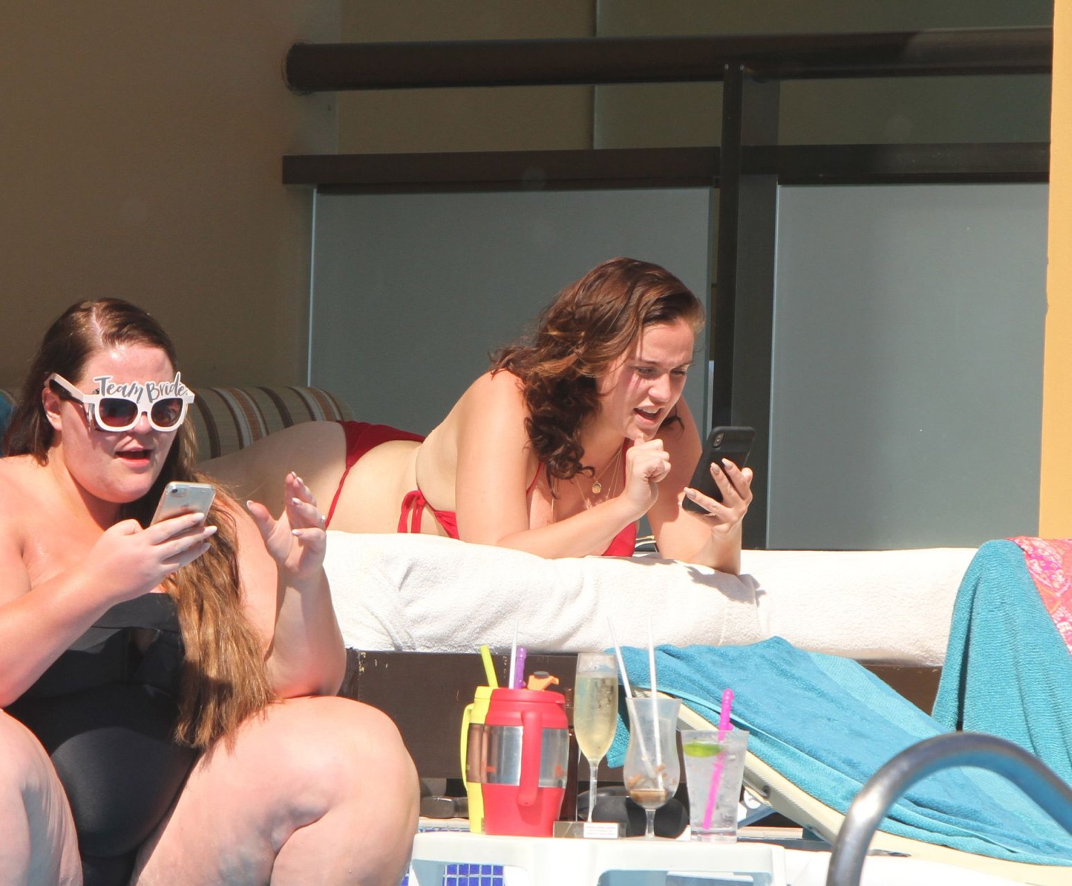 Vicky mostró una cara valiente para las celebraciones a pesar de sufrir un desamor tras separarse de su prometido John Noble y cancelar su boda. Fue vista tomando el sol en una tumbona y llevando una pila de vasos de plástico en el agua.