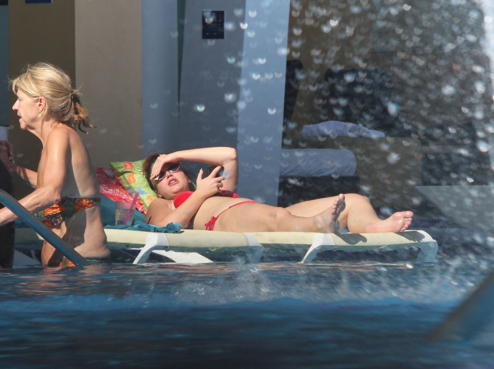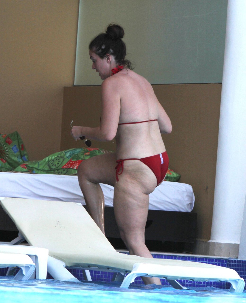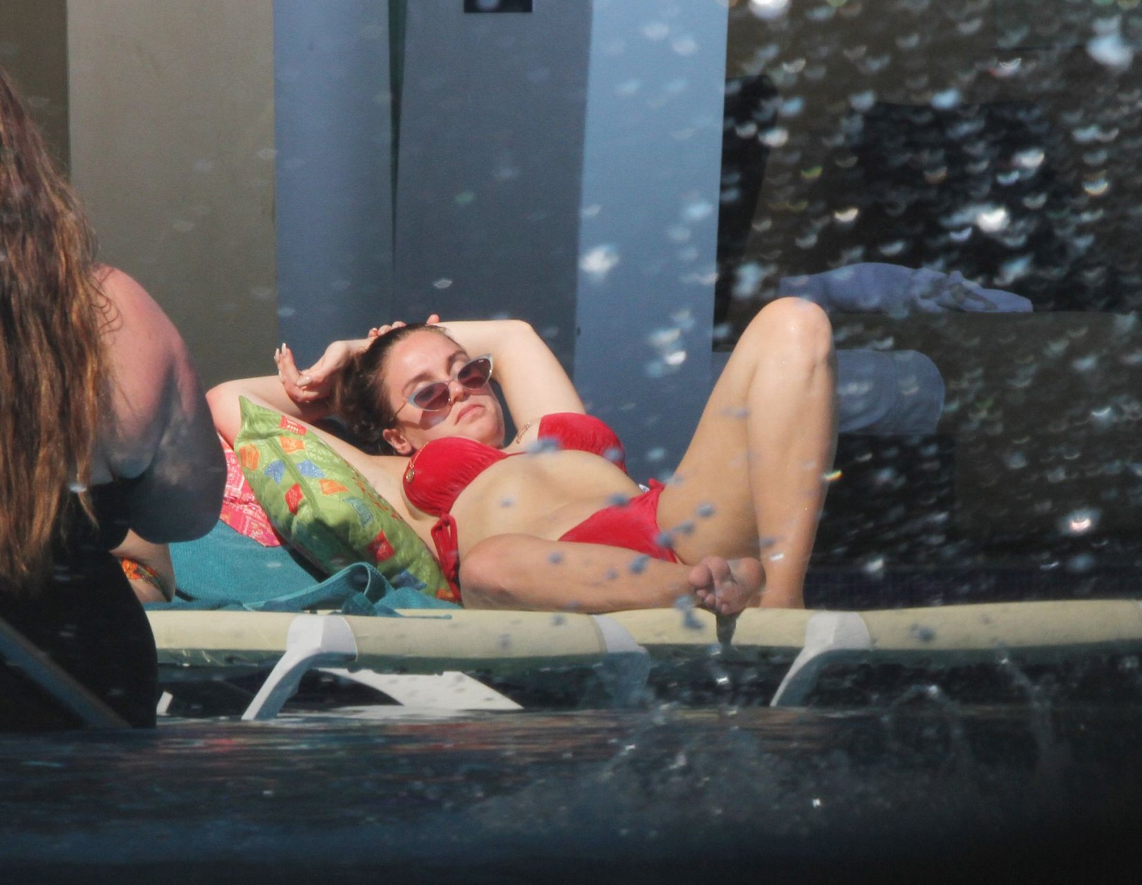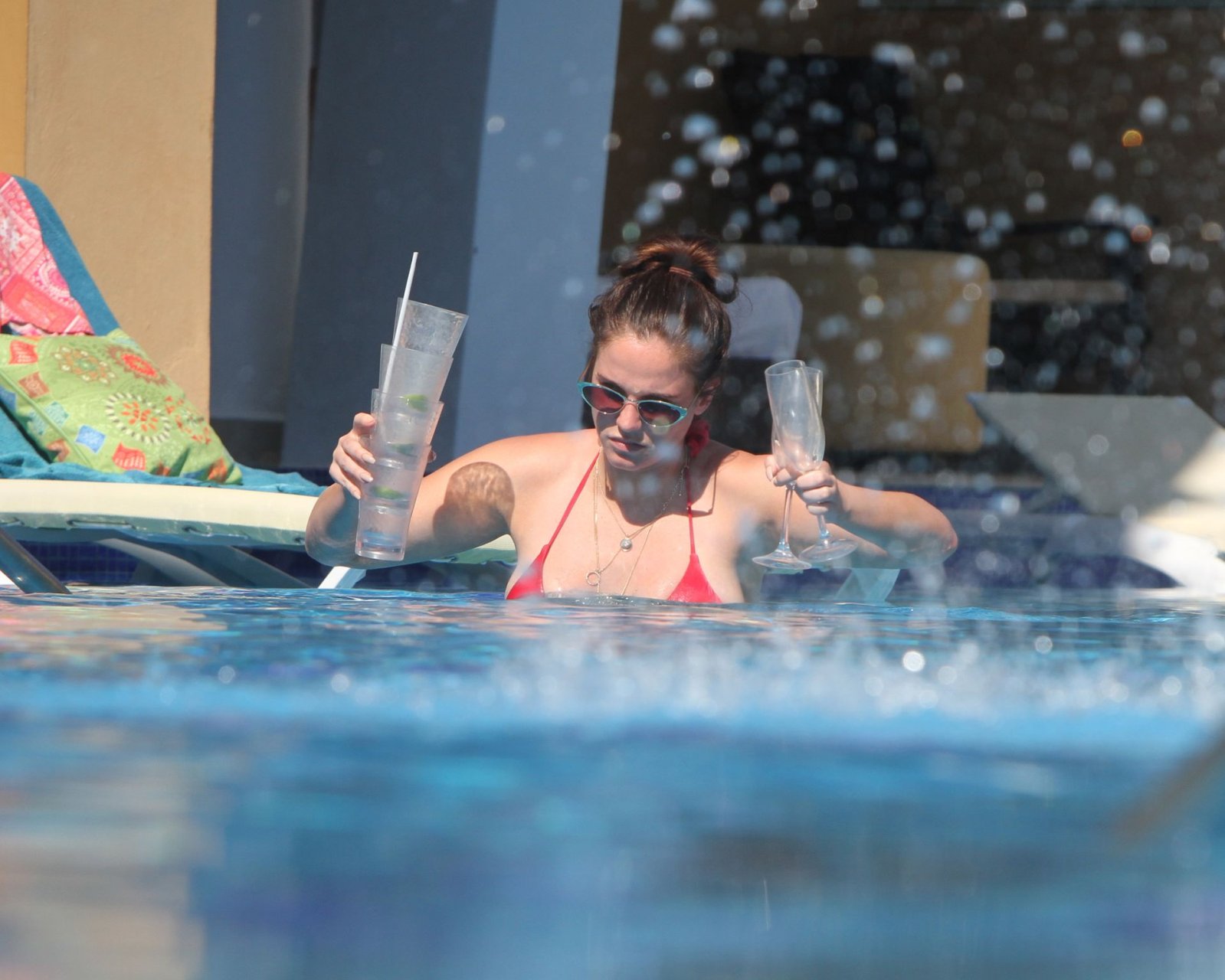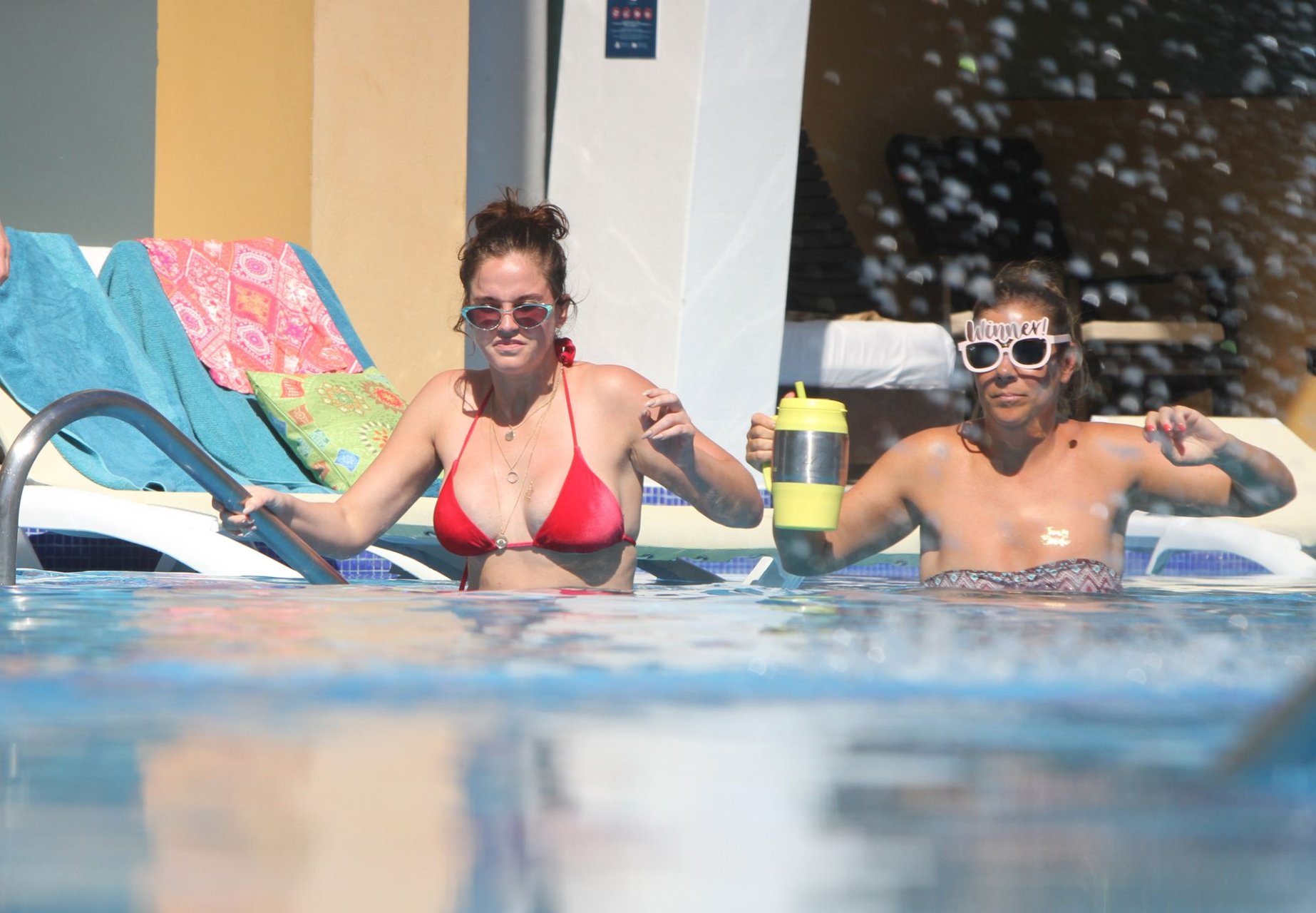 Vicky Pattison disfruta de un rato divertido bajo el sol con un bikini rojo en Tulum, México, 01/08/2019. La ex estrella de “Geordie Shore” de 31 años llevaba un bikini rojo sexy mientras era vista celebrando la despedida de soltera de su hermana Laura en la piscina.