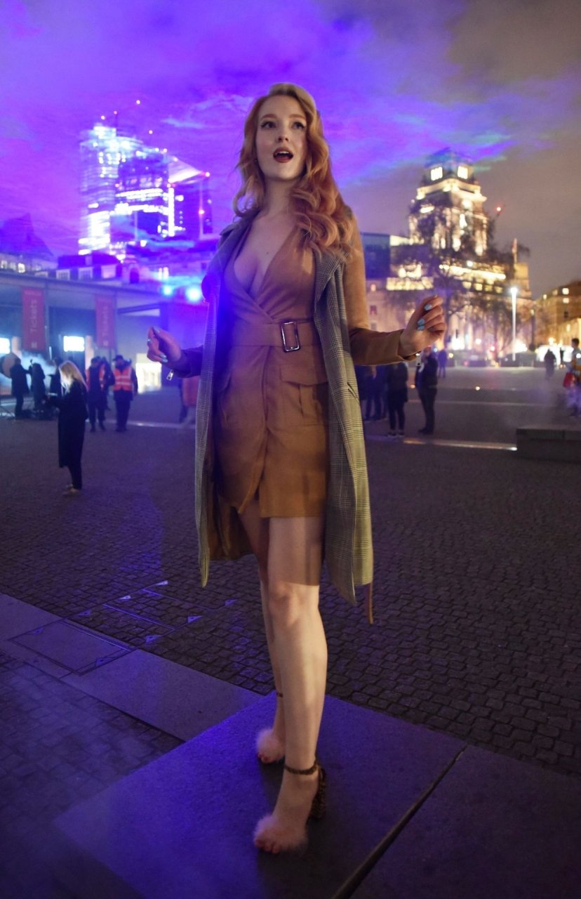 Victoria Clay fue vista en la Instalación de Arte Huawei P30 Pro por Dan Acher en la Torre de Londres, 04/04/2019. La modelo británica mostró su escote y sus piernas sexys.
