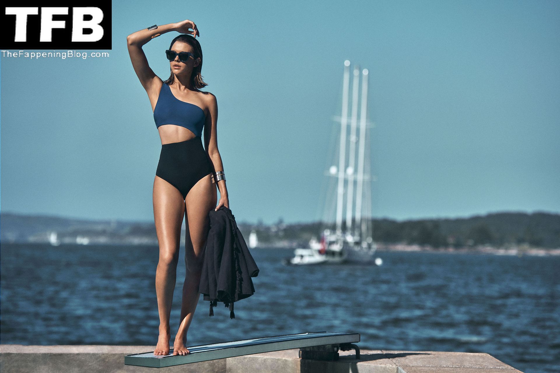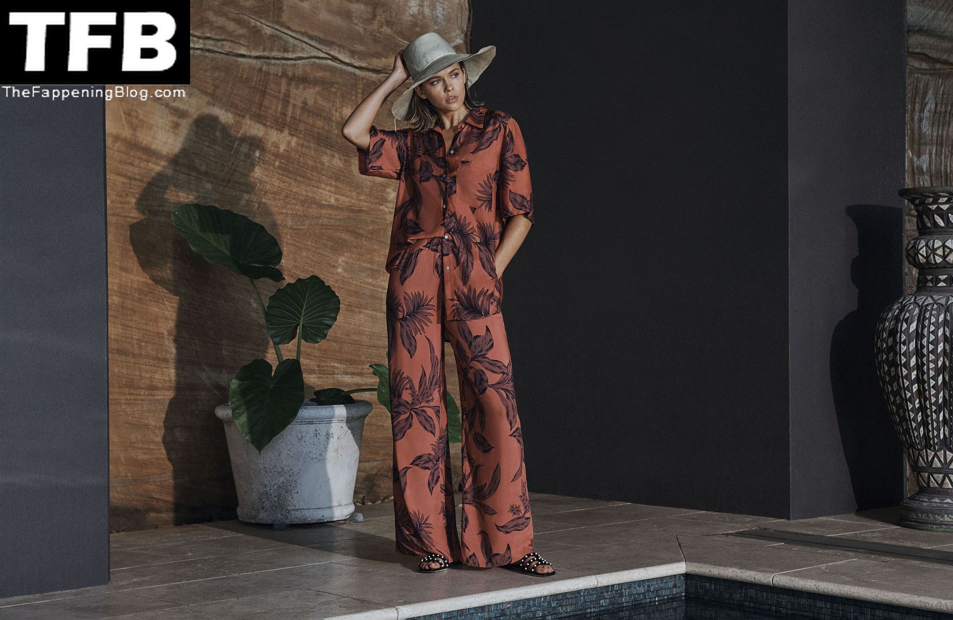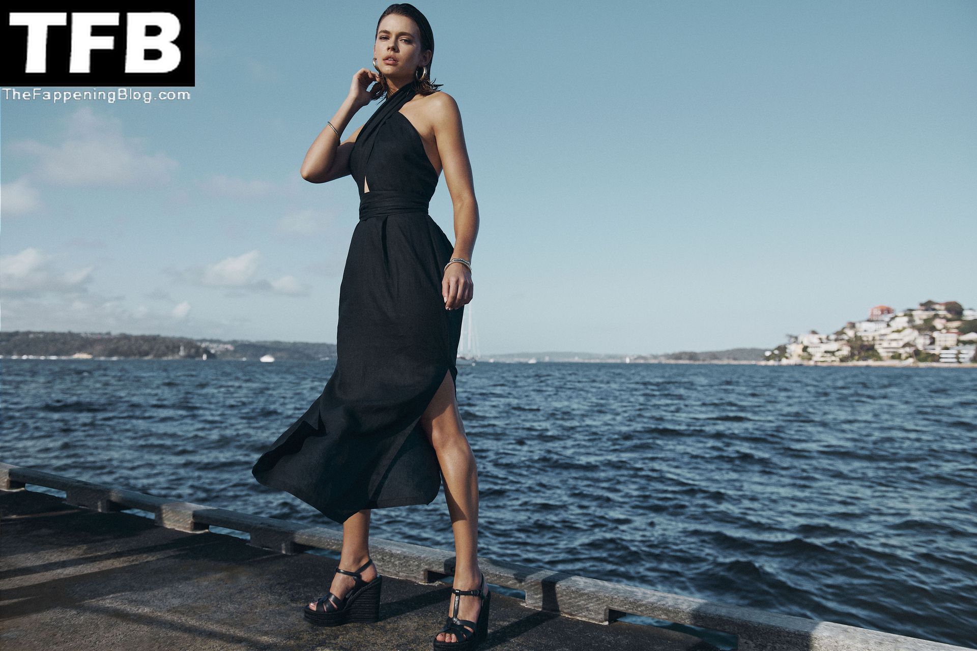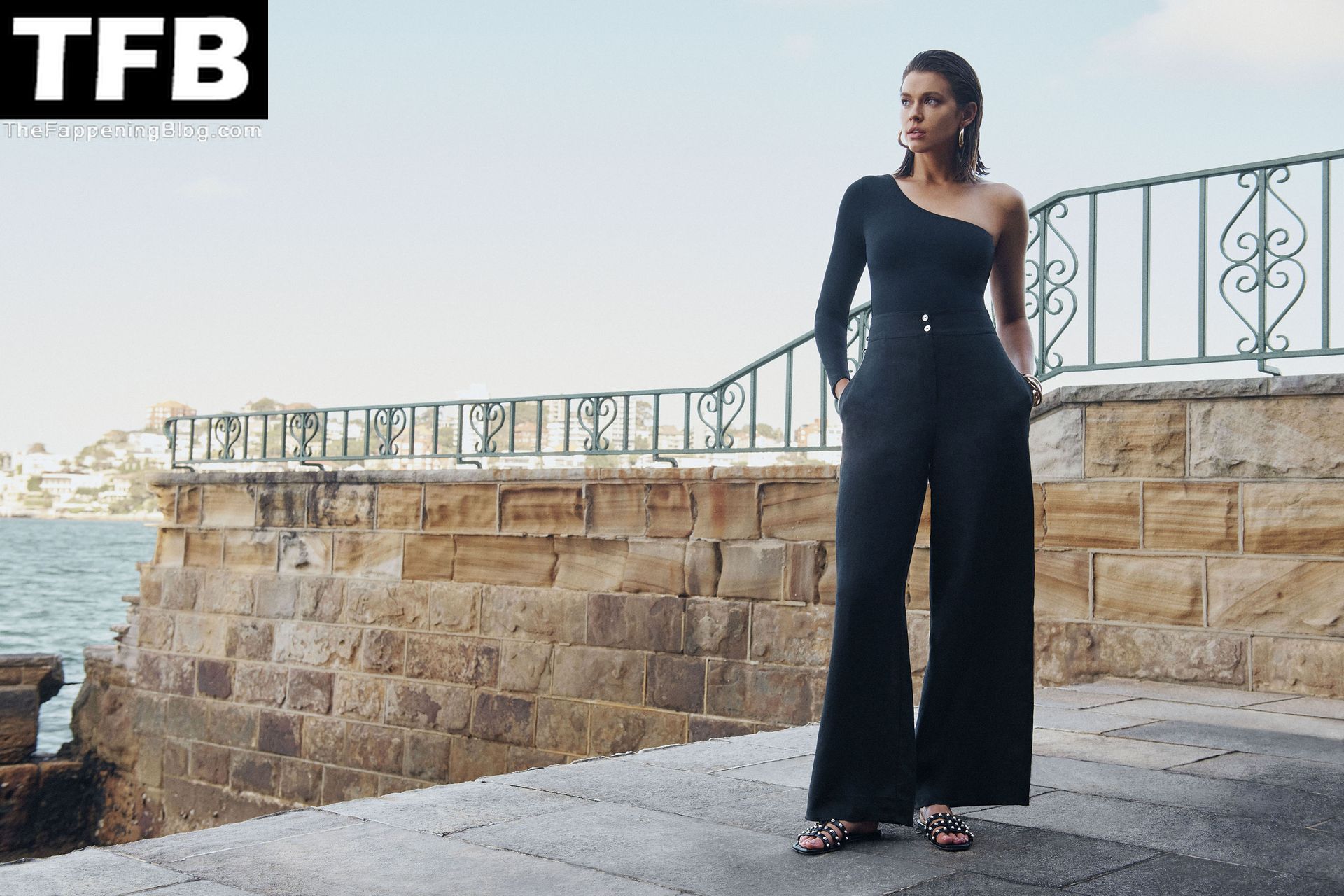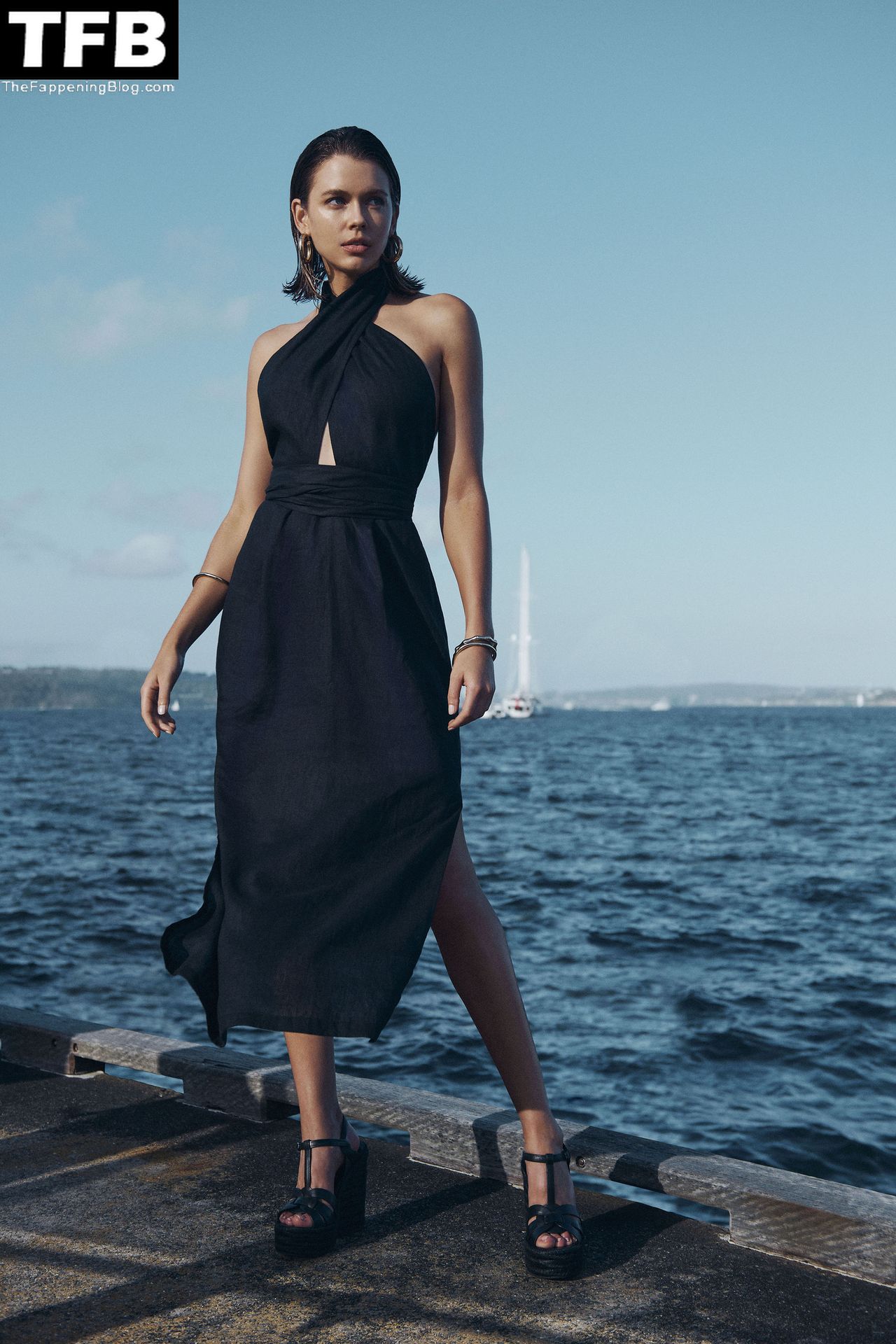La belleza de piernas largas muestra la colección “Sanctuary In Style” en una sesión con el fotógrafo Simon Lekias para una campaña que “se inspira en el glamour de los viajes, la expresión del arte y la belleza aislada de destinos tropicales.”