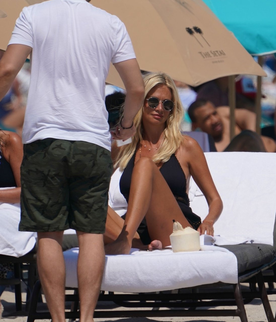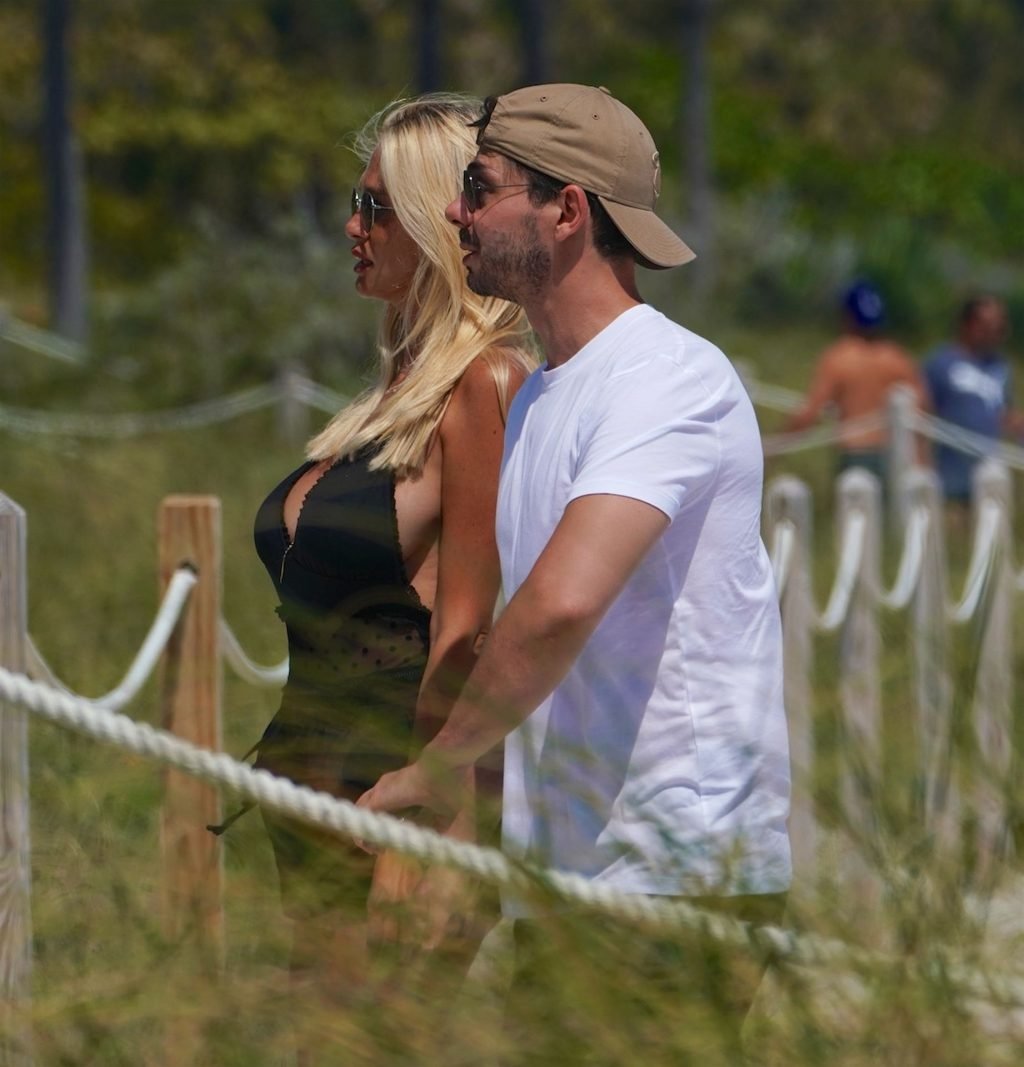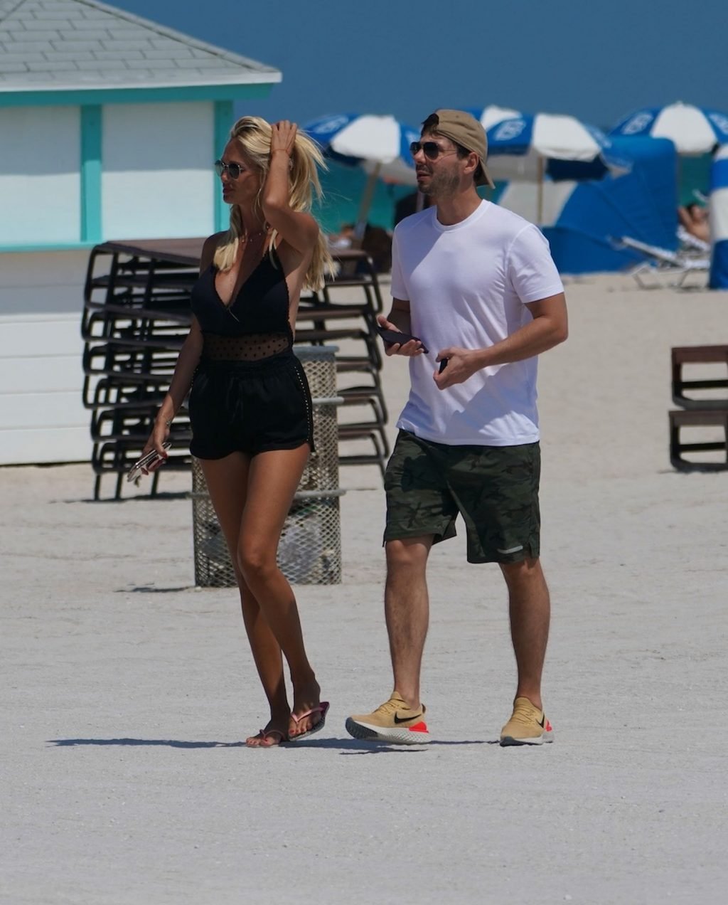 Embajadora de la Copa Mundial de la FIFA 2018, presentadora de televisión y modelo Victoria Lopyreva e Igor Bulatov fueron vistos en la playa de Miami Beach, 17/03/2019. Victoria acaba de dar a luz al primer hijo de la pareja en Miami.