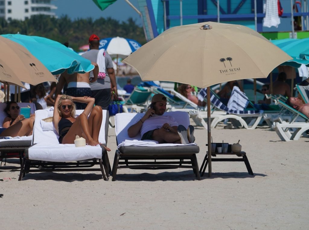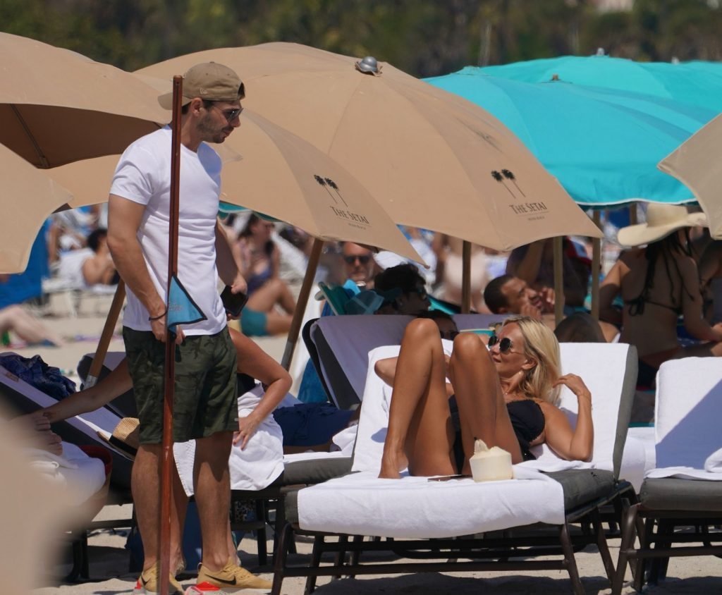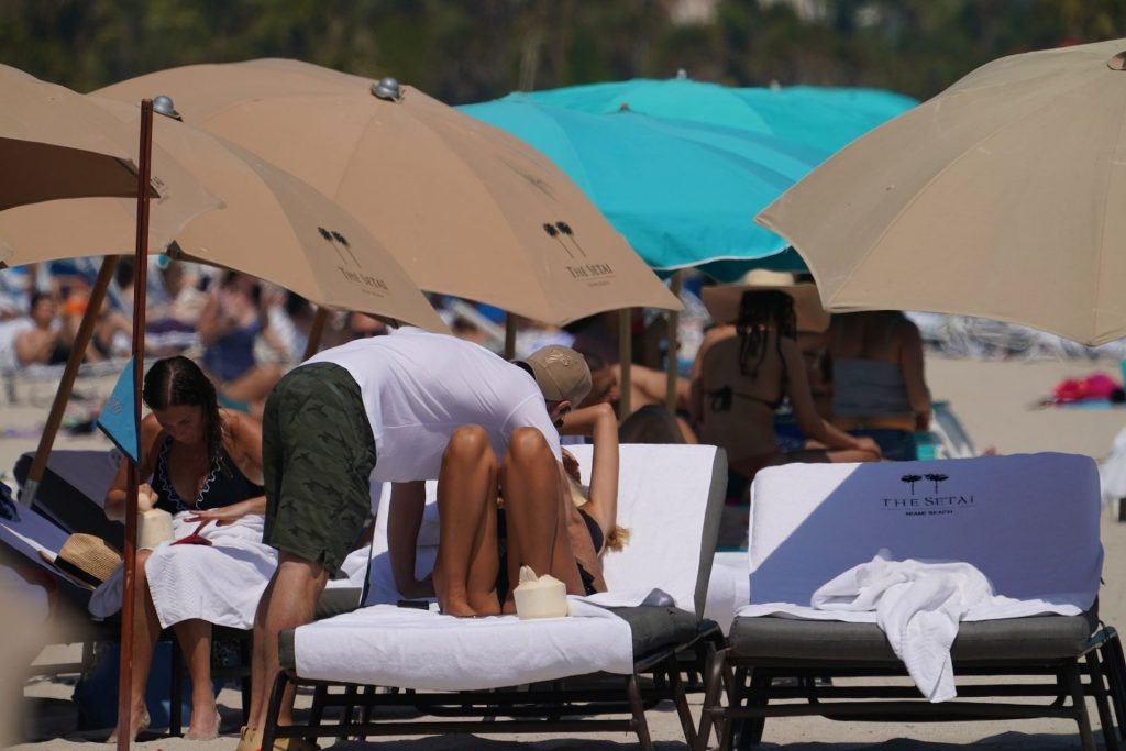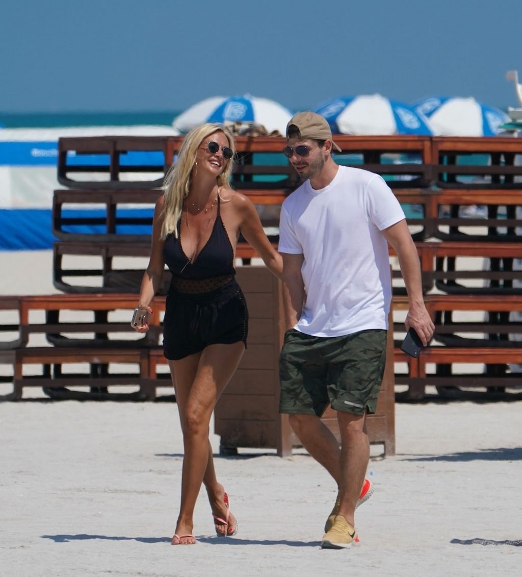 Embajadora de la Copa Mundial de la FIFA 2018, presentadora de televisión y modelo Victoria Lopyreva e Igor Bulatov fueron vistos en la playa de Miami Beach, 17/03/2019. Victoria acaba de dar a luz al primer hijo de la pareja en Miami.