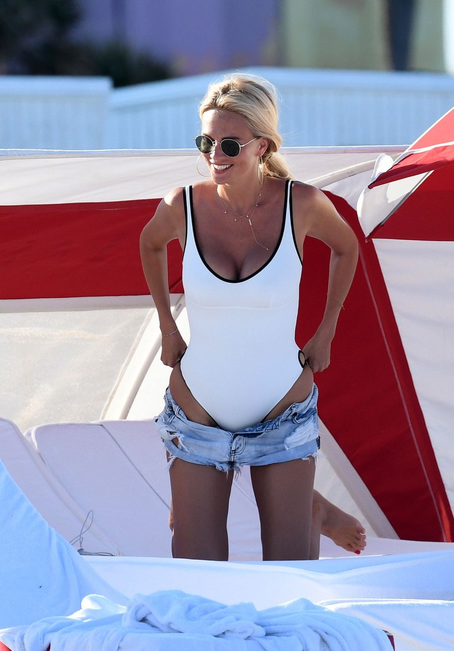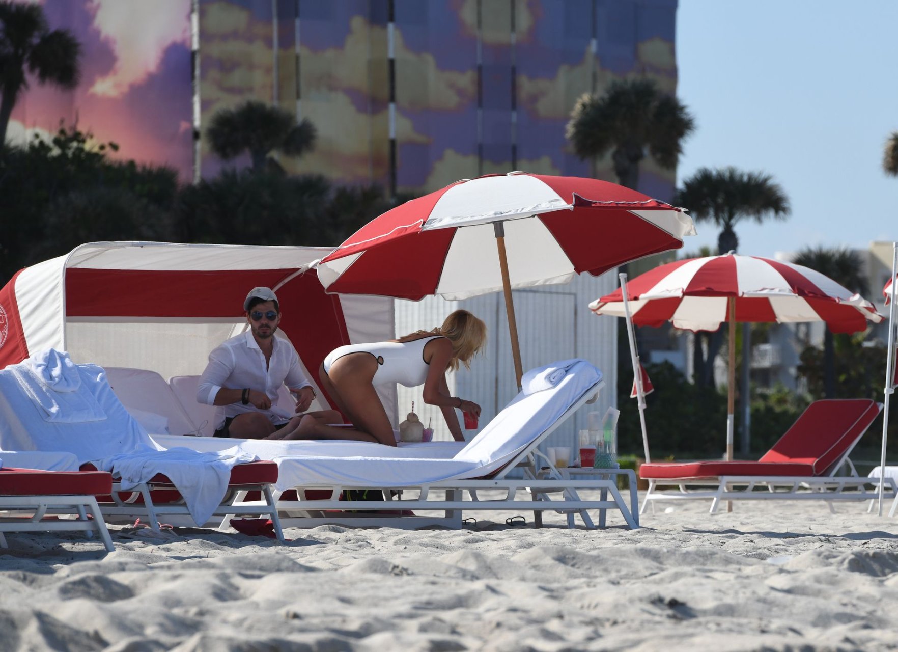 La ex Miss Rusia Victoria Lopyreva muestra su increíble cuerpo de playa con un traje de baño blanco en Miami, 11/04/2019. La reina de belleza de 35 años y embajadora de la Copa Mundial de la FIFA 2018 también es presentadora de televisión y nueva mamá.