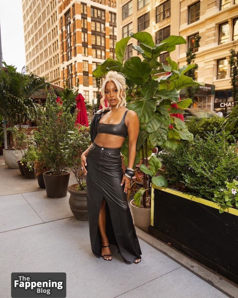 ¡Echa un vistazo a la increíble colección de fotos de Victoria Monét! Ella luce ese estilo ligeramente desnudo y sexy, sosteniendo sus pechos sin camiseta como una jefa. ¡Y vaya, su escote con sus grandes pechos sin sostén está perfecto! Su trasero y piernas calientes también son pura fuego, sin mencionar su cuerpo en forma con todos esos atuendos geniales. ¡Esta chica sabe cómo lucirse!