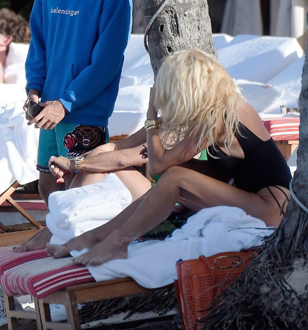 Alexandre Grimaldi-Coste parece estar incondicionalmente bajo el hechizo de las increíbles tetas y trasero de la modelo sueca Victoria Silvstedt, que lleva un sexy traje de baño negro, disfrutando del día en St Barths, 01/05/2021.