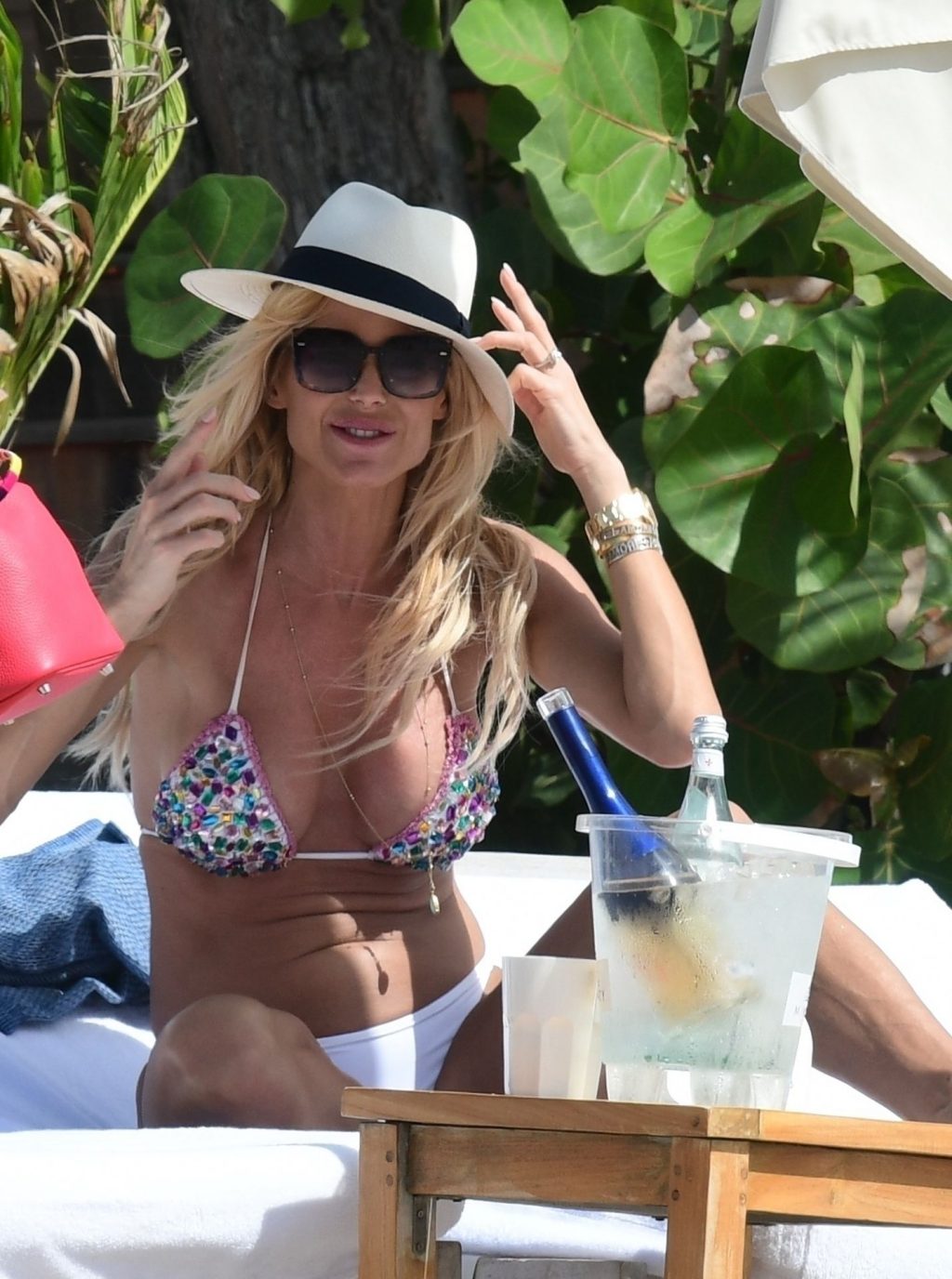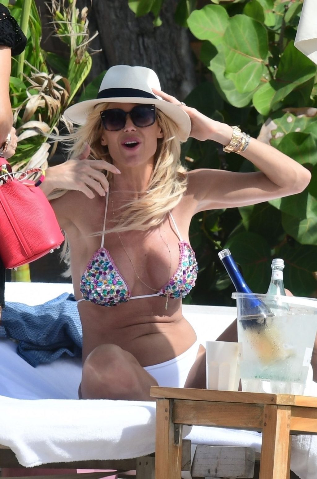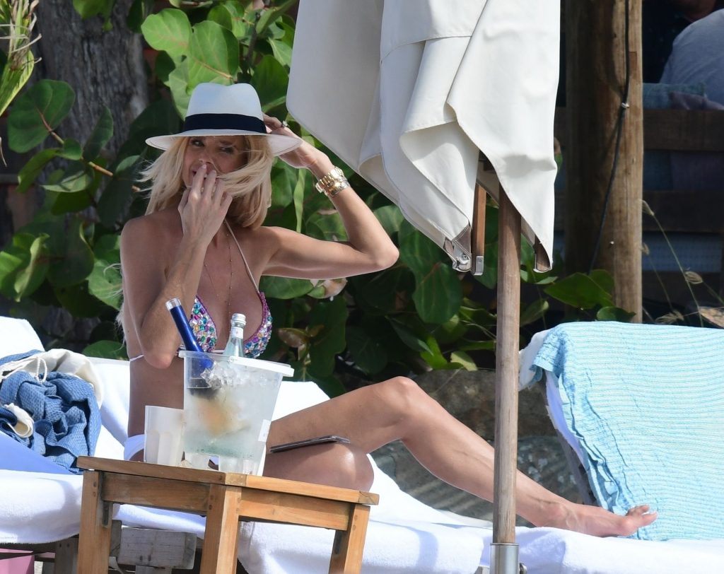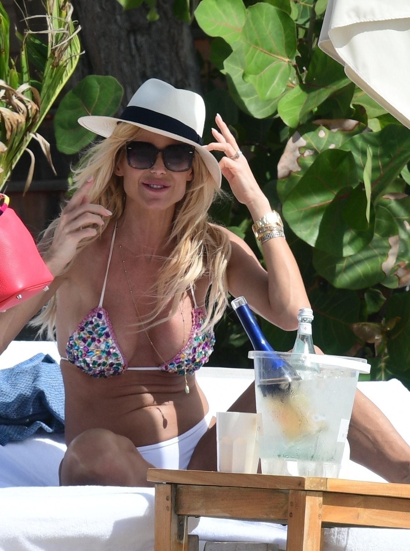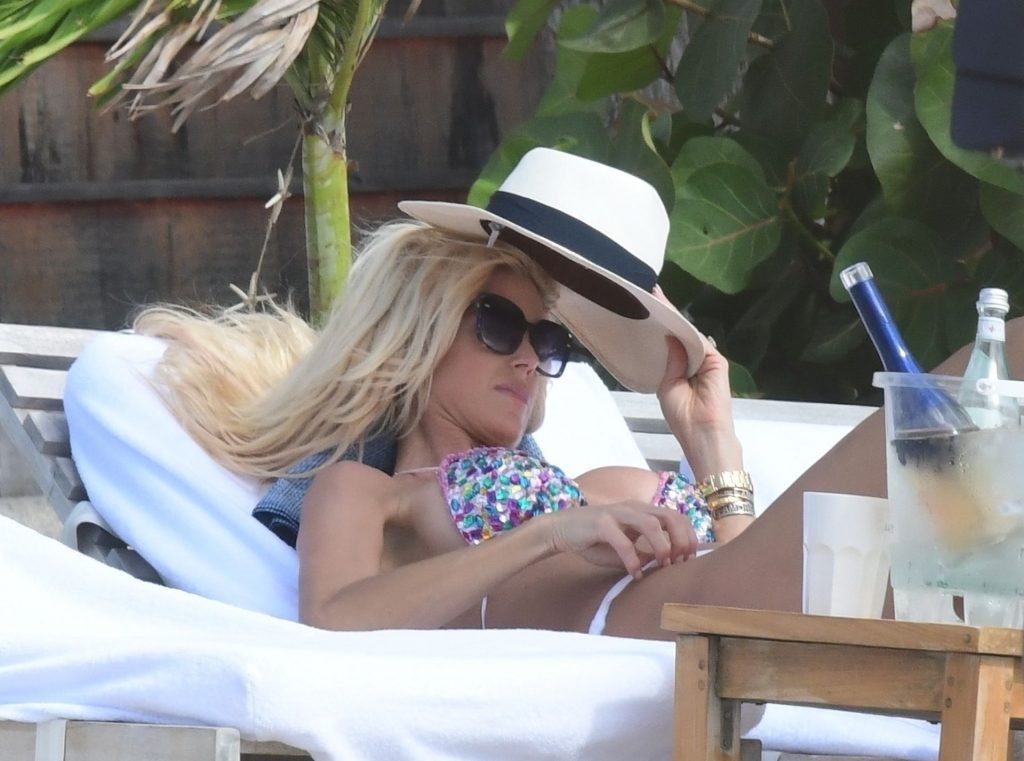 La modelo sueca Victoria Silvstedt disfruta de un día en la playa durante sus vacaciones anuales en St Barts, 24/12/2019.