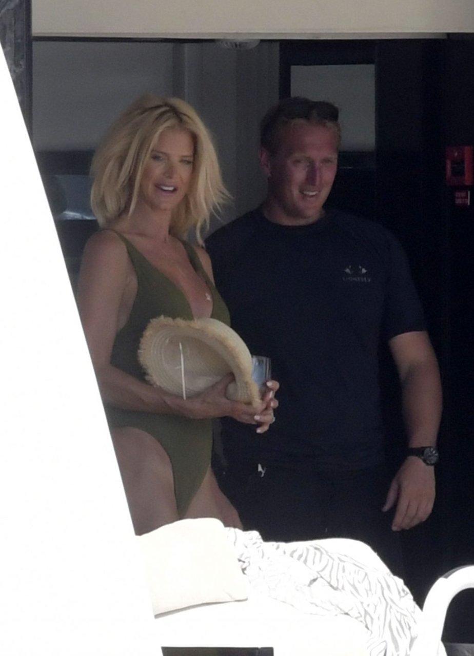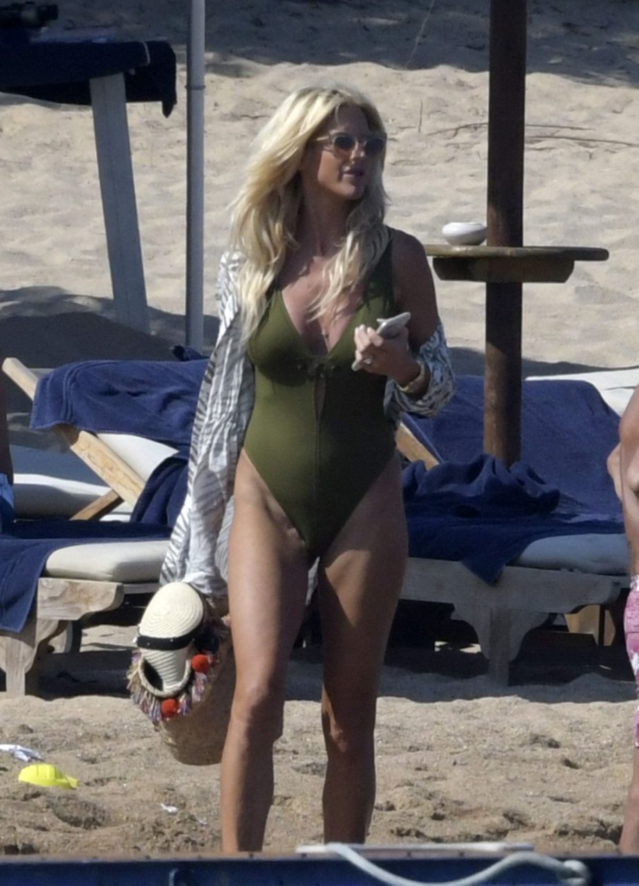 Victoria Silvstedt (43) fue vista usando un traje de baño verde súper sexy en la playa de Cerdeña, 06/08/2018. La figura de la celebridad es increíble: piernas largas, abdomen plano y senos exuberantes.
