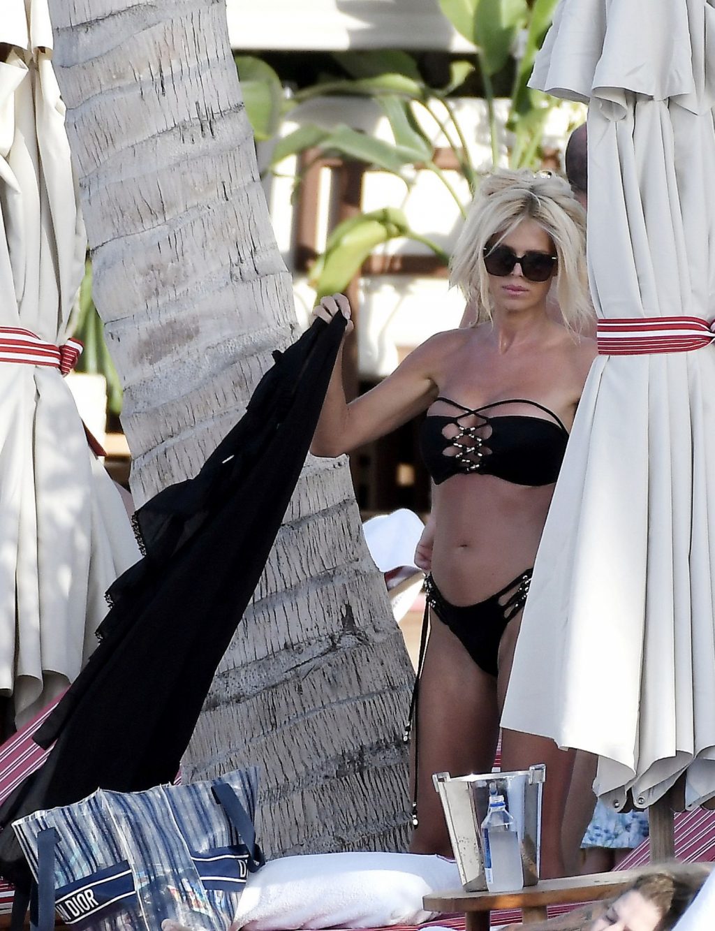 Victoria Silvstedt fue vista disfrutando del día en la playa en St Barths, 01/09/2020. La superestrella con busto mostró sus grandes pechos vistiendo un bikini negro.