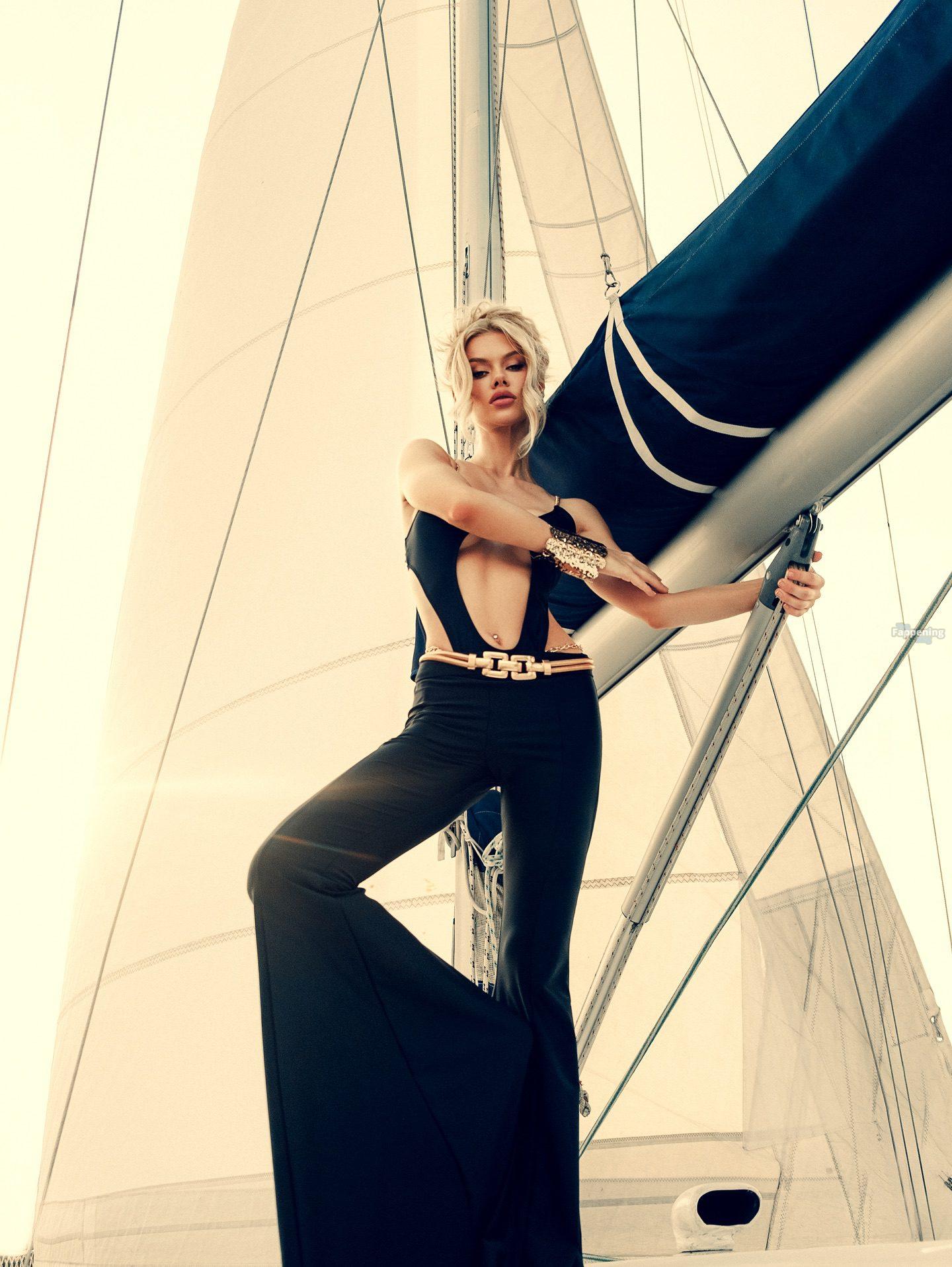 Viktoria Apanasenko está presumiendo sus tetas, luciendo un sexy body con recortes en una ardiente sesión en un yate por Iryna Rul.