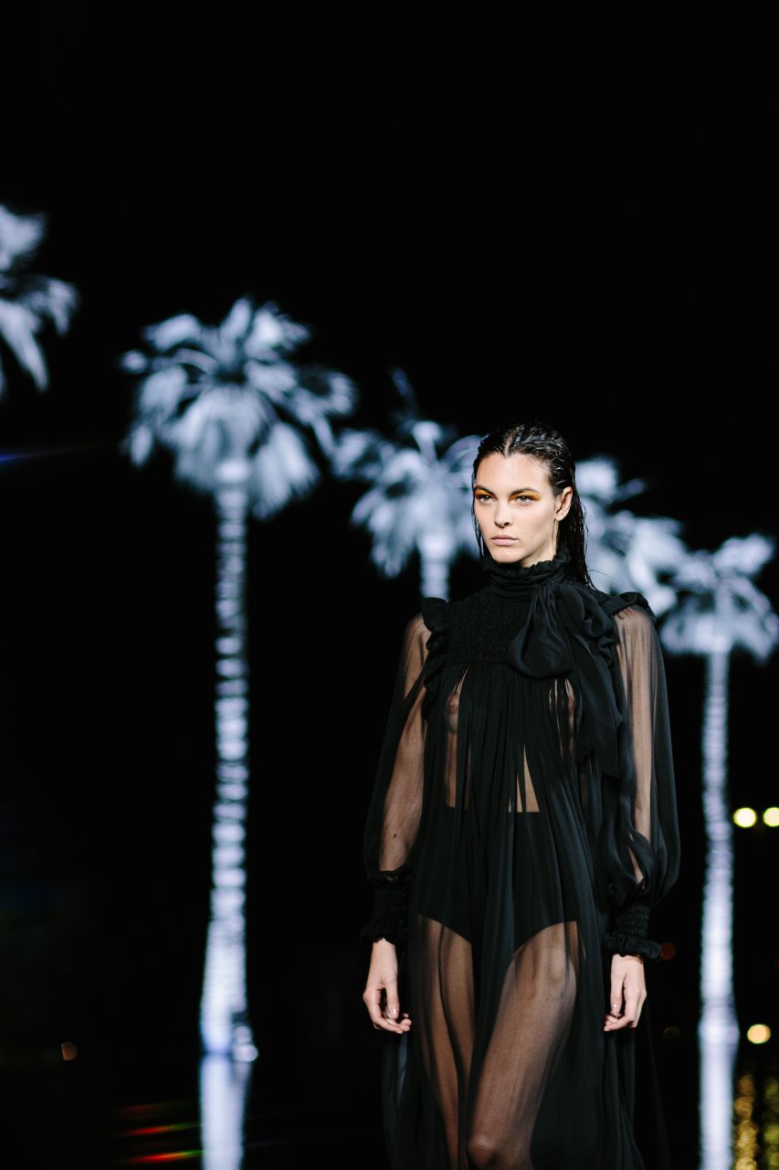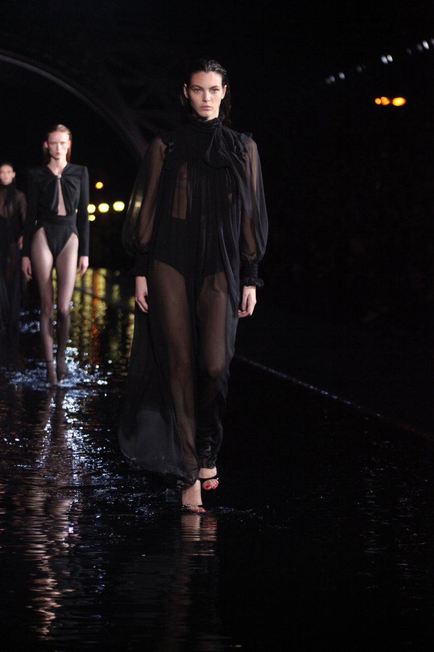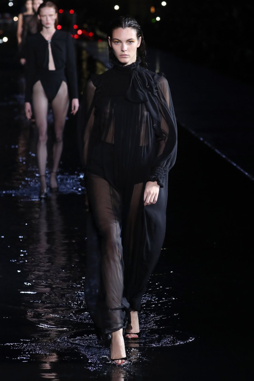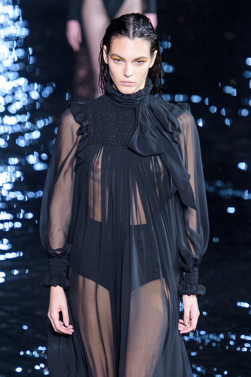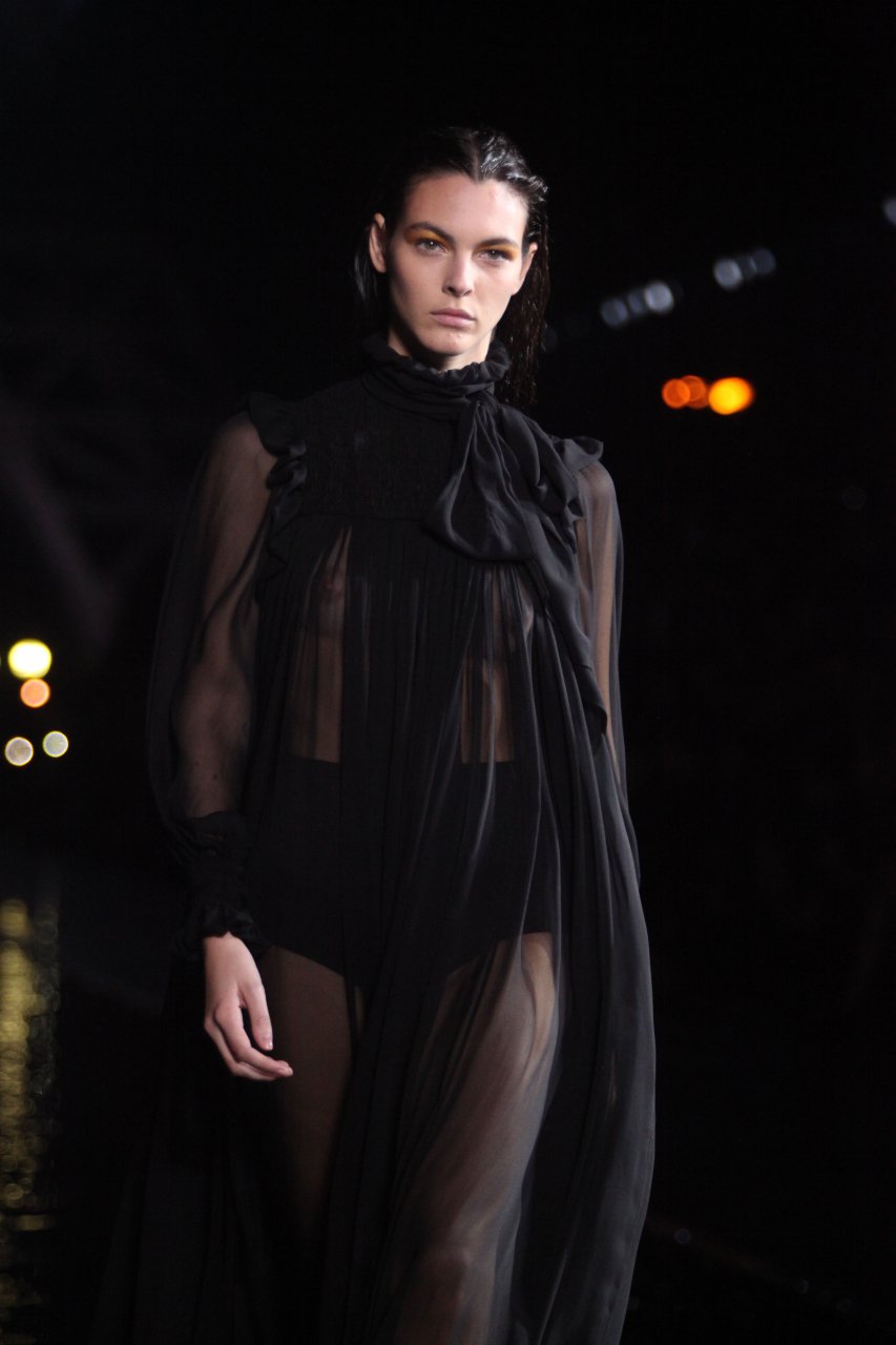 La modelo Vittoria Ceretti (20) mostró sus pequeños pechos en el último desfile de moda Saint Laurent Primavera/Verano 2019 durante la Semana de la Moda de París, 25/09/2018.