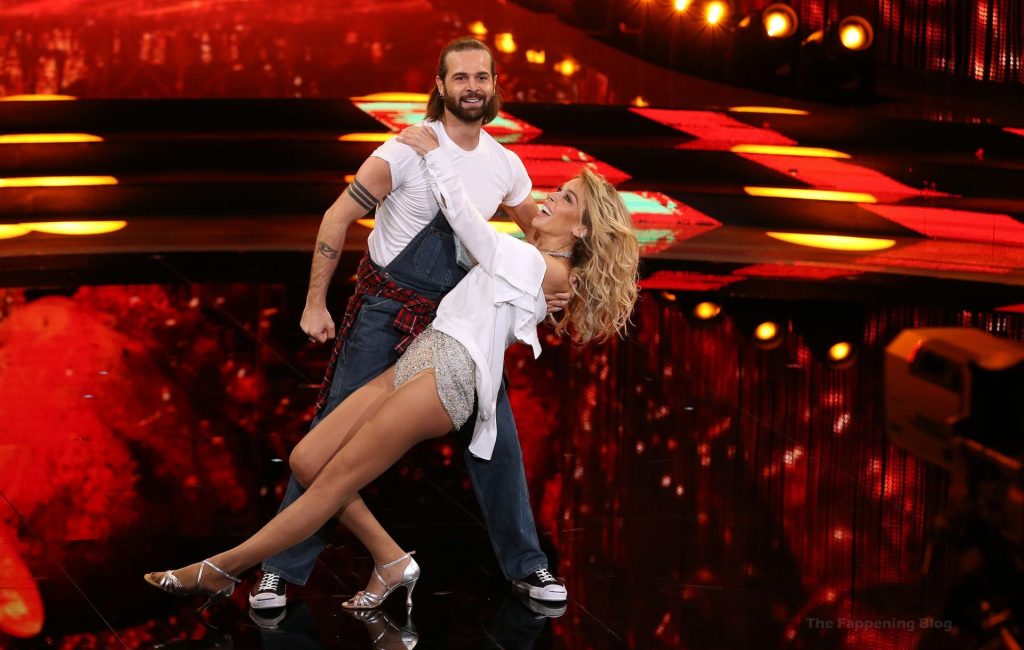 La actriz italiana de largas piernas Vittoria Schisano y su pareja de baile Marco De Angelis asisten al programa de televisión “Ballando Con Le Stelle” (Dancing With The Stars) en Roma, Italia, 17/10/2020.