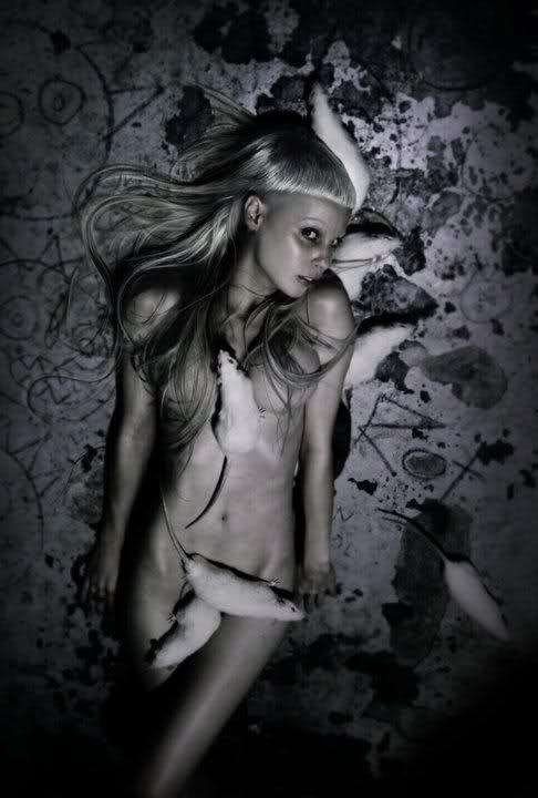 No. Está alterada en que tiene las marcas/glyphs, pero es su cuerpo desnudo. Mira las caderas, las piernas. Quiero decir, no sé cómo decirte que 'veas'—o tienes ojos agudos o no. Lo siento, eres un tonto.