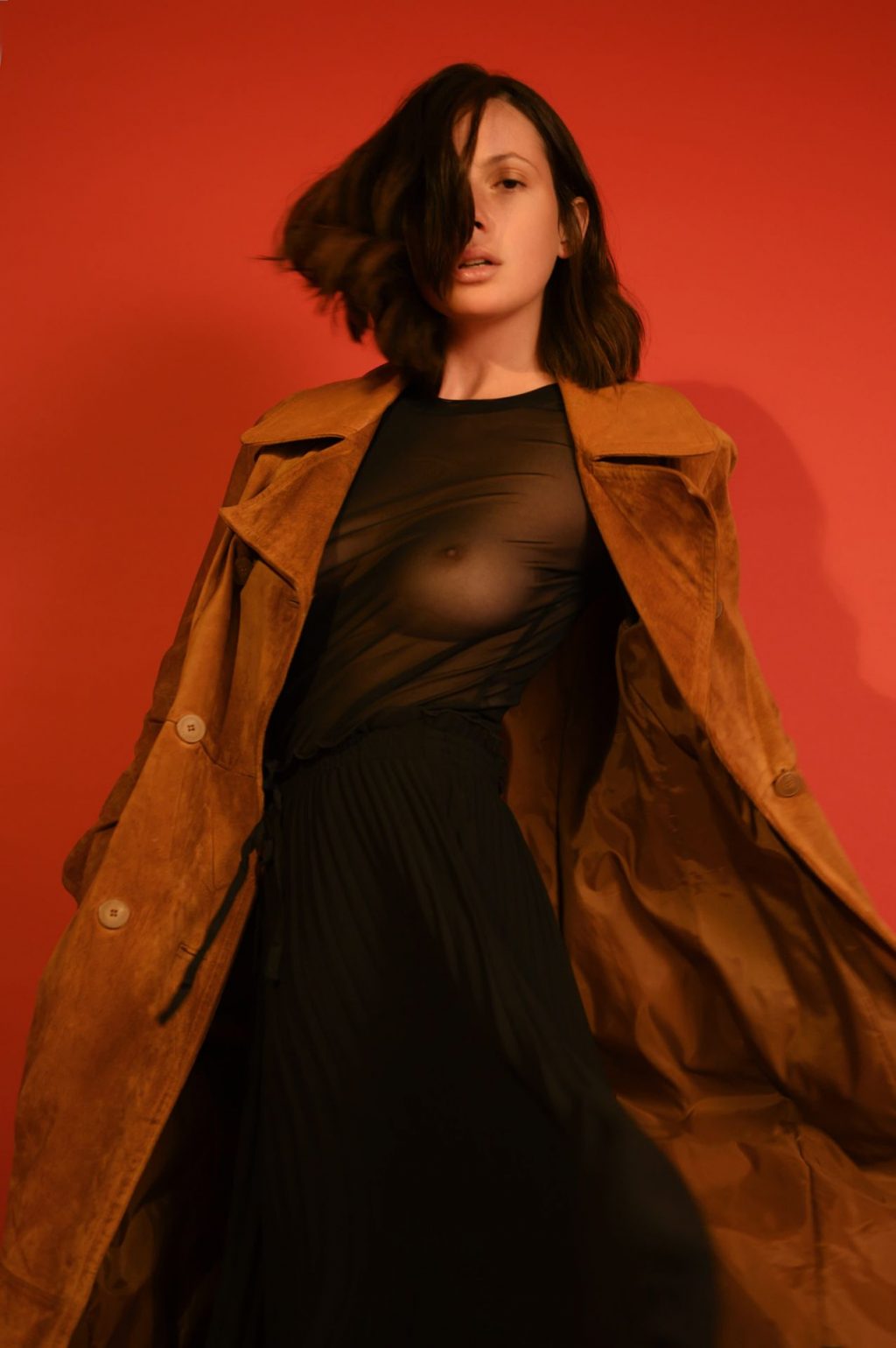 ¡Ella lleva puesto un abrigo y pantalones! ¡No está desnuda!