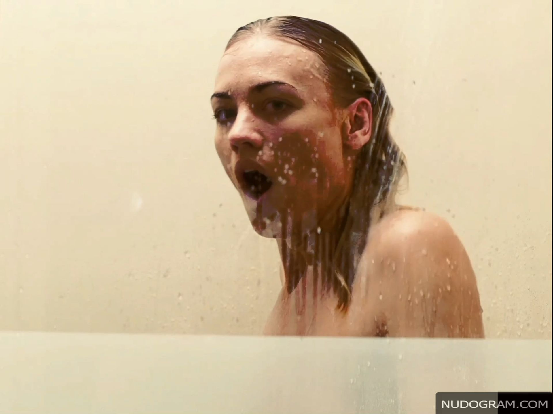 La estrella de Fappening está desnuda en la ducha cuando se masturba con una mano. Puedes ver su cuerpo desnudo y los contornos de sus pechos. Luego se estremece cuando ve al chico mirándola. Yvonne deja caer la toalla para mostrar primero su trasero desnudo. Luego el chico la besa y se mueven hacia la pared donde el chico agarra y chupa sus pechos antes de darle la vuelta para tener sexo con ella estando detrás. El pecho derecho de Yvonne es claramente visible de lado en la primera escena desnuda.
