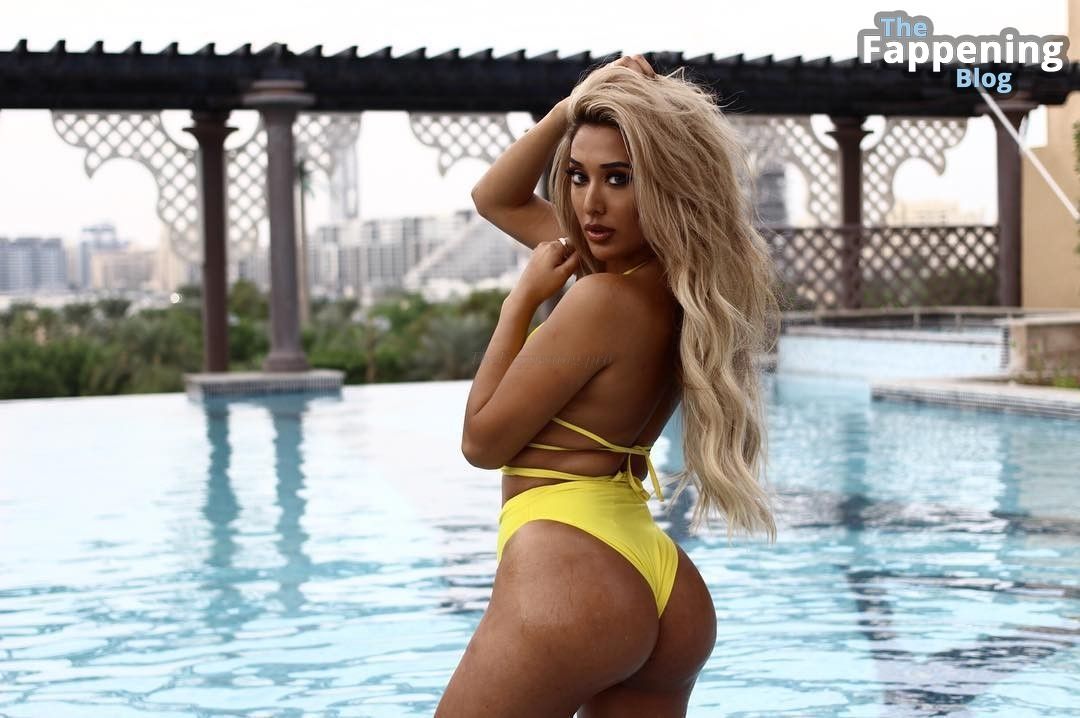 ¡Mira las últimas fotos de la chica caliente Zahida Allen y sus curvas explosivas! Ella posa completamente desnuda de espaldas, ¡dándonos un vistazo de su enorme pecho en bikinis ajustados!