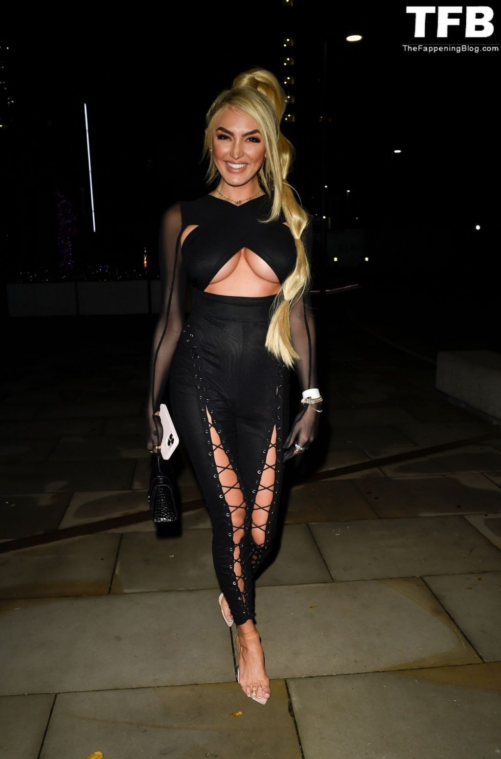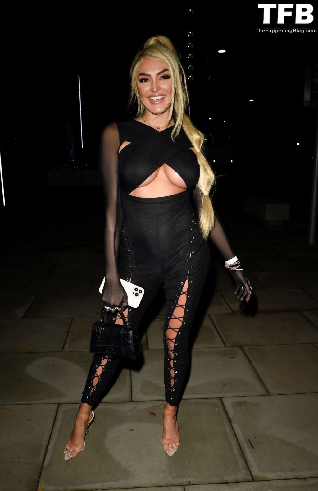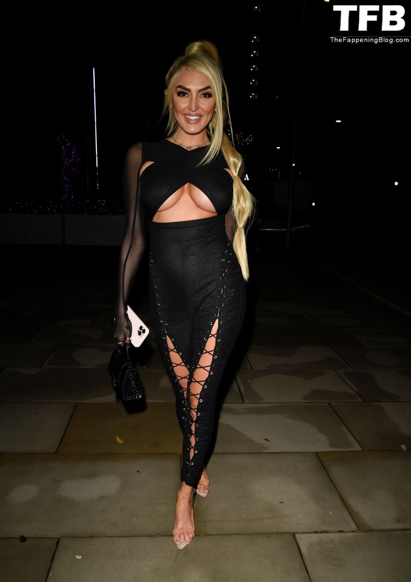 “Ex On The Beach” estrella ZaraLena Jackson muestra un busto prominente mientras se dirige a FireFly en Manchester en una noche de chicas, 19/12/2021.