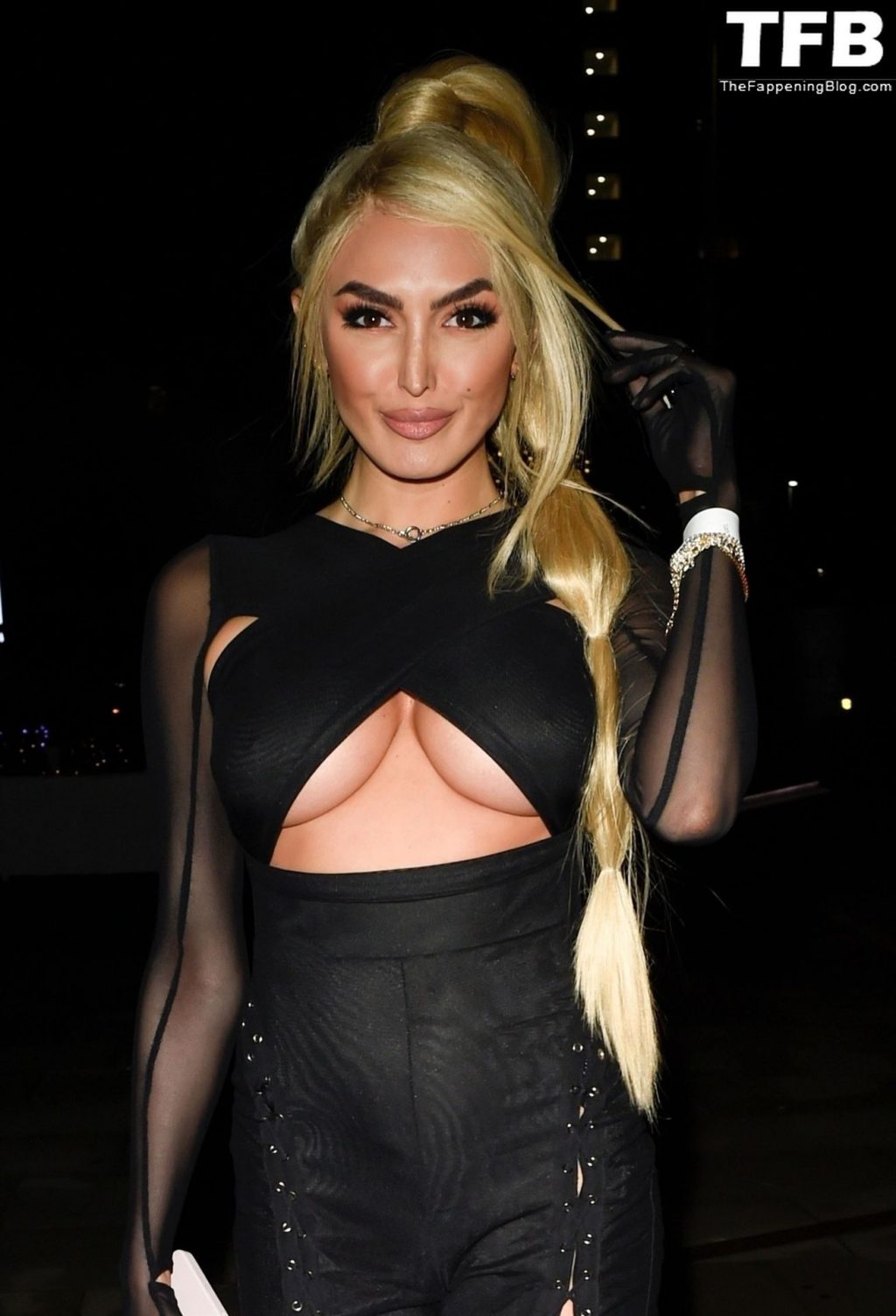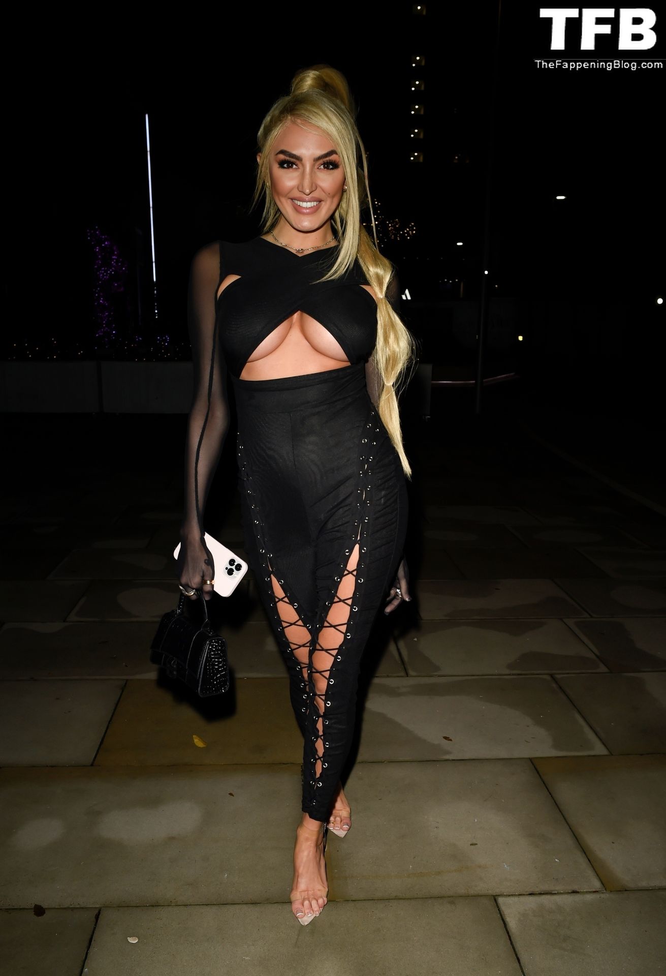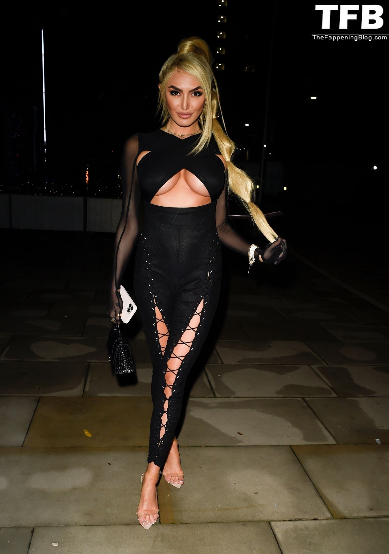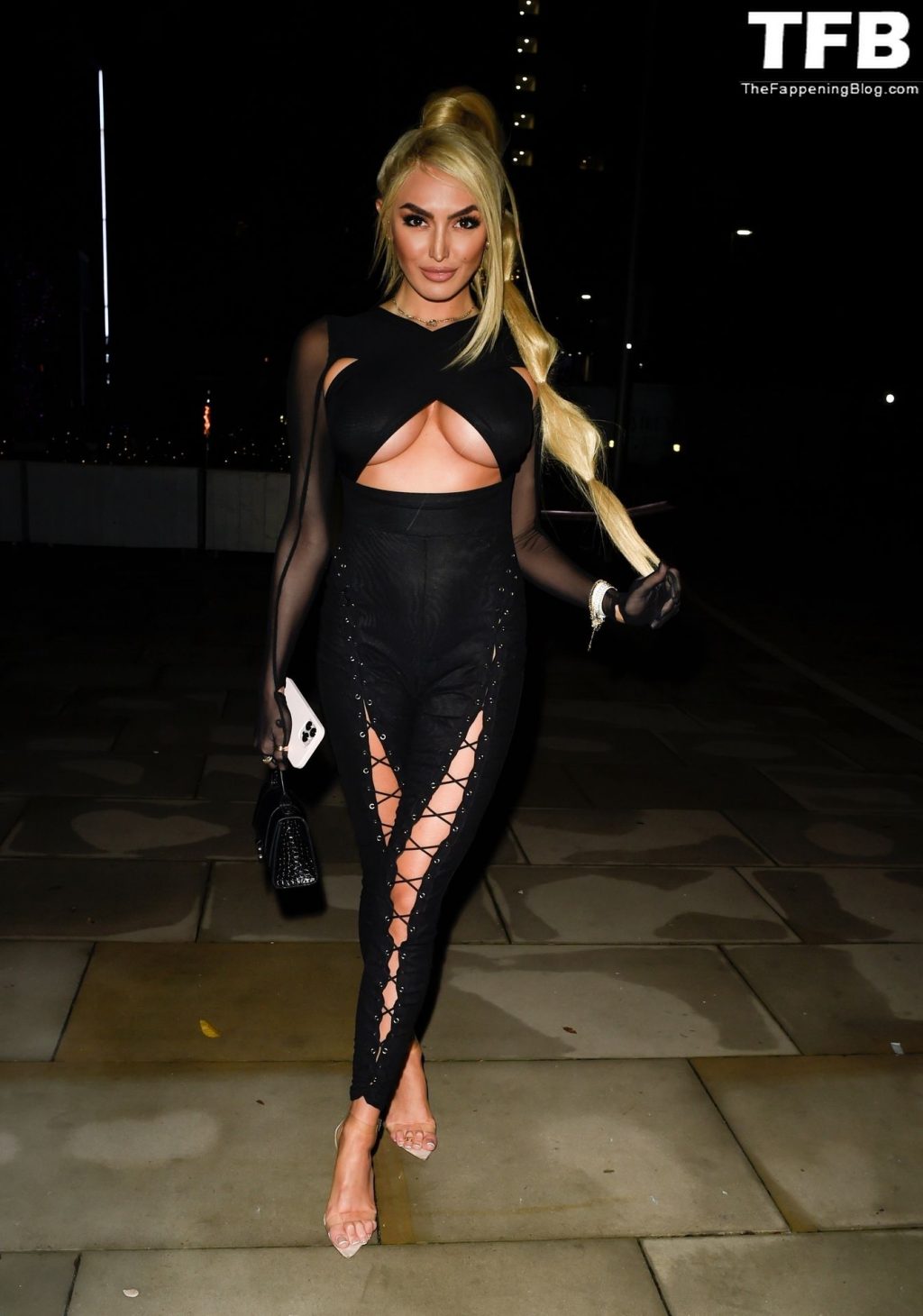 “Ex On The Beach” estrella ZaraLena Jackson muestra un busto prominente mientras se dirige a FireFly en Manchester en una noche de chicas, 19/12/2021.