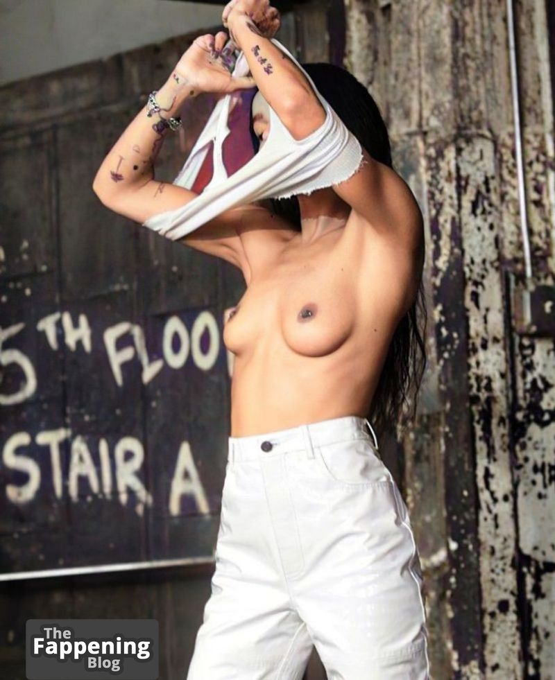 Echa un vistazo a la ardiente colección de fotos desnudas y sexys de Zoe Kravitz, luciendo su pecho sin sujetador ni top, pezón perforado, trasero al descubierto y cuerpo en forma, en la sesión, fotos y capturas de pantalla a continuación.