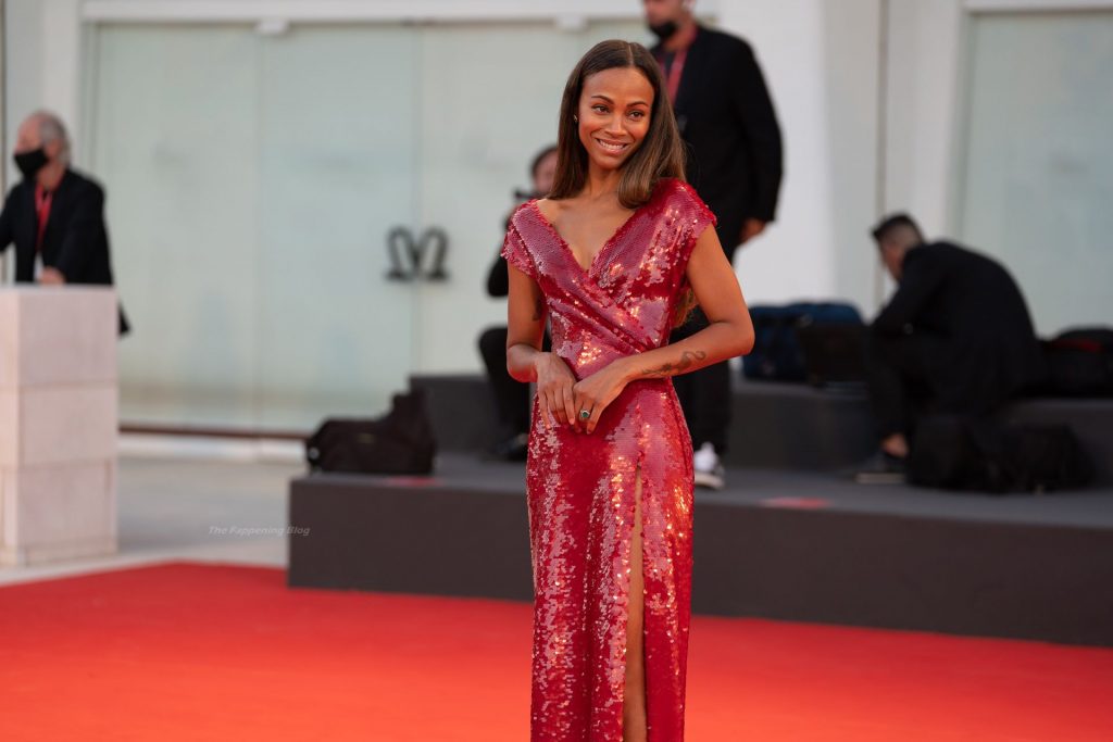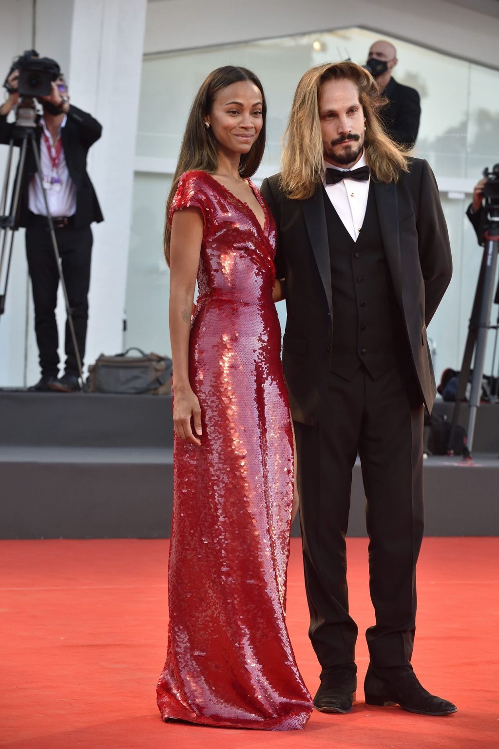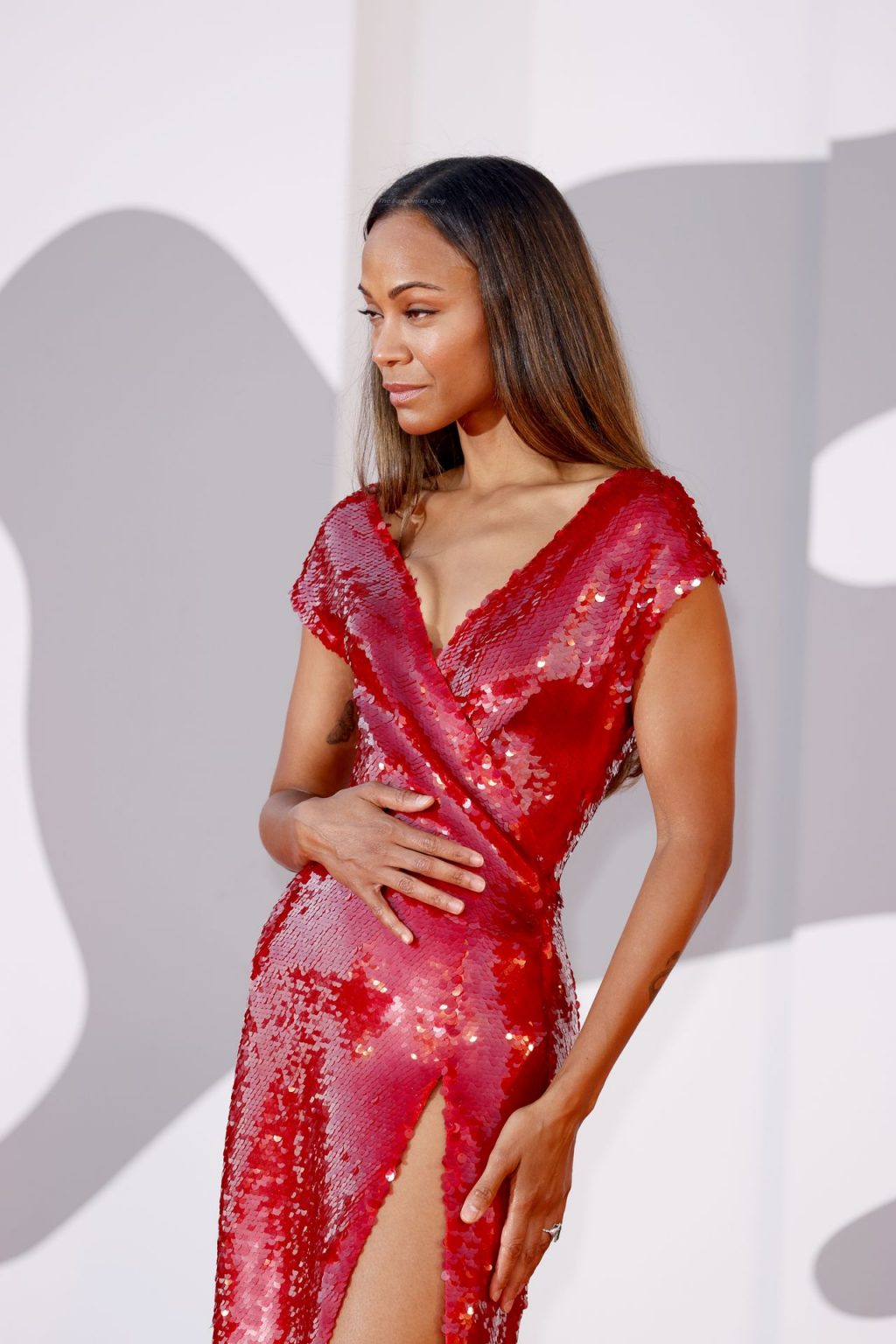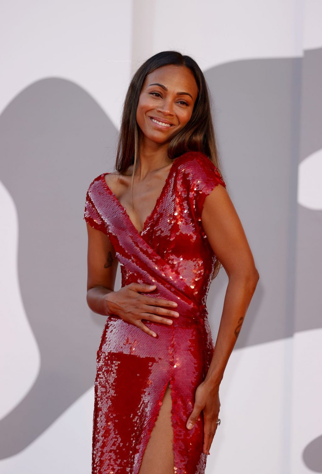 La actriz estadounidense/dominicana Zoe Saldana llega para la proyección de la película “E stata la mano di Dio” (La mano de Dios) presentada en competición durante el 78º Festival de Cine de Venecia en Venice Lido, 02/09/2021.