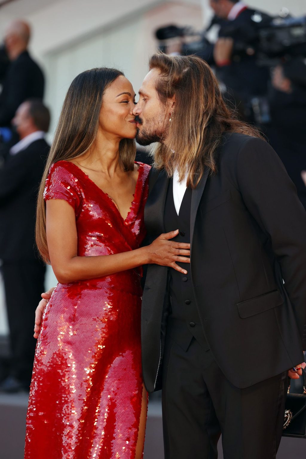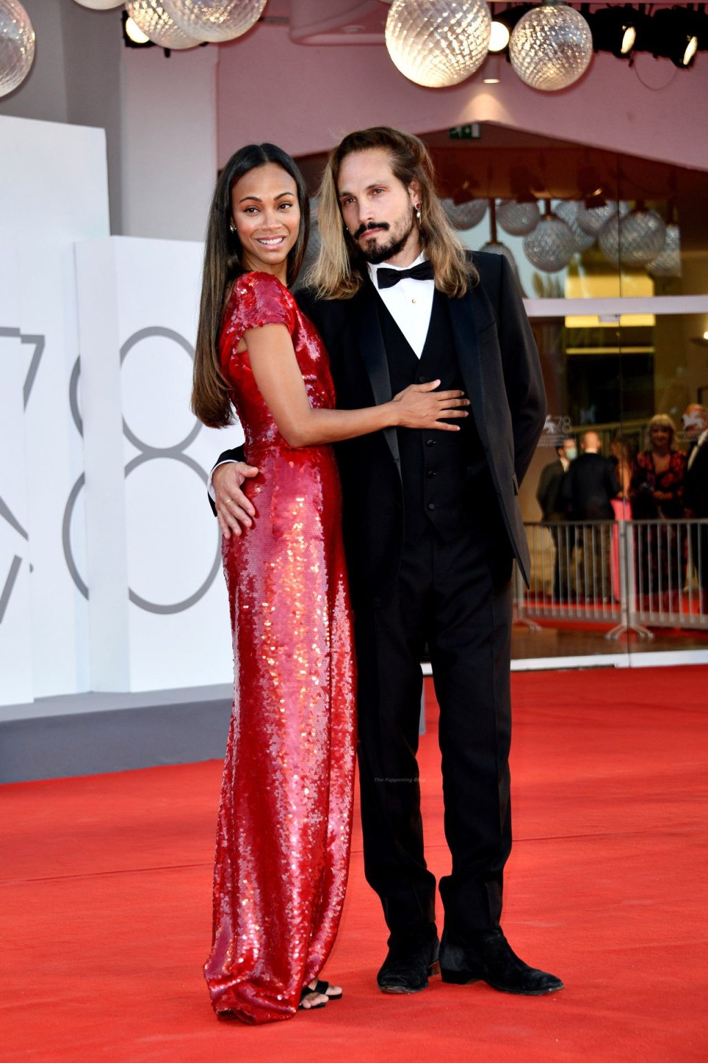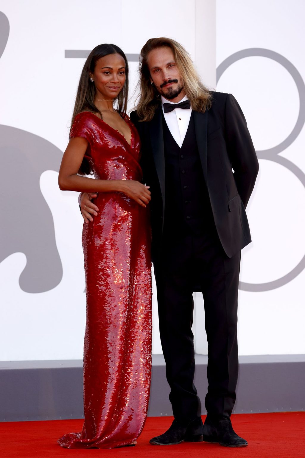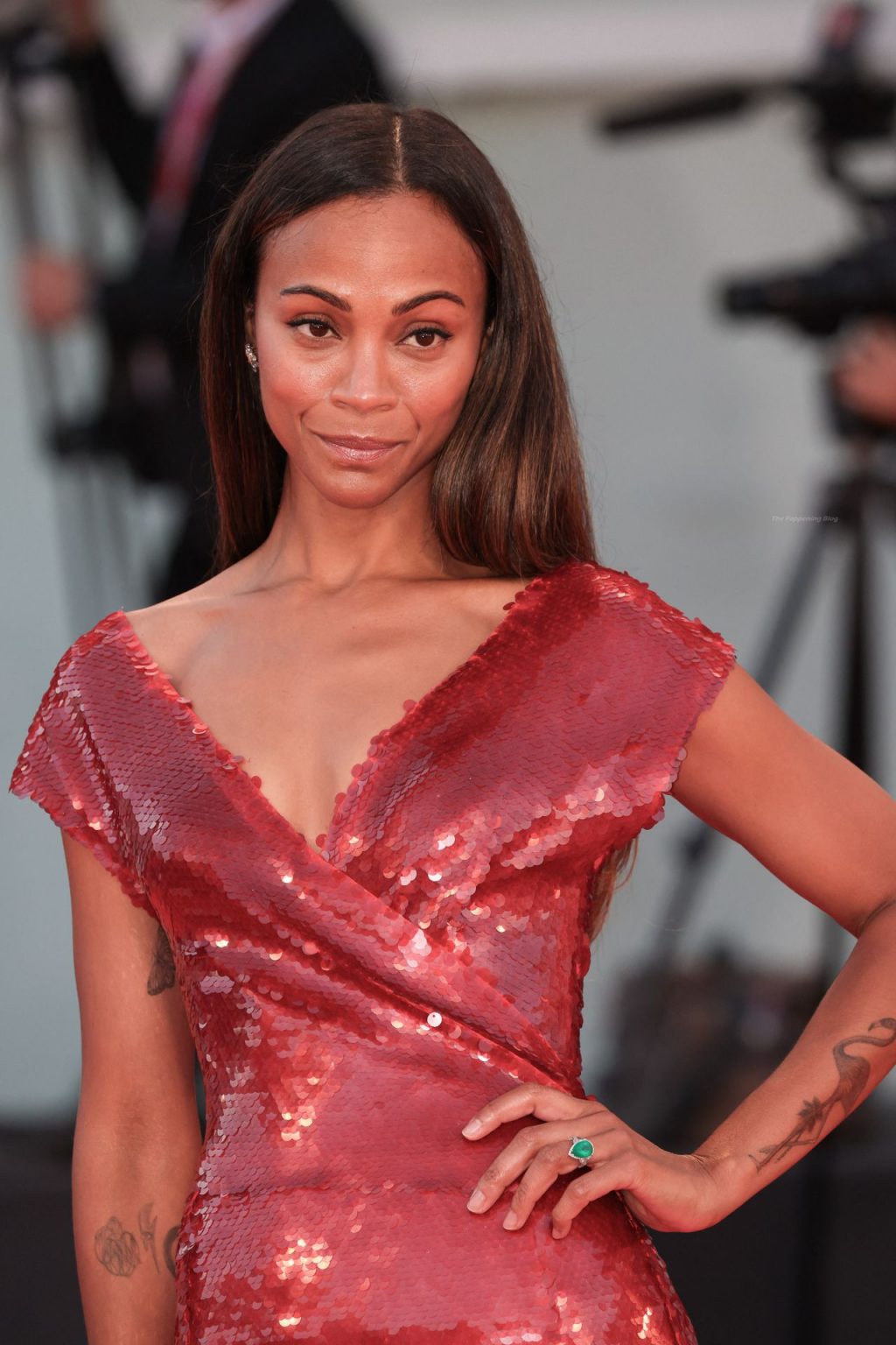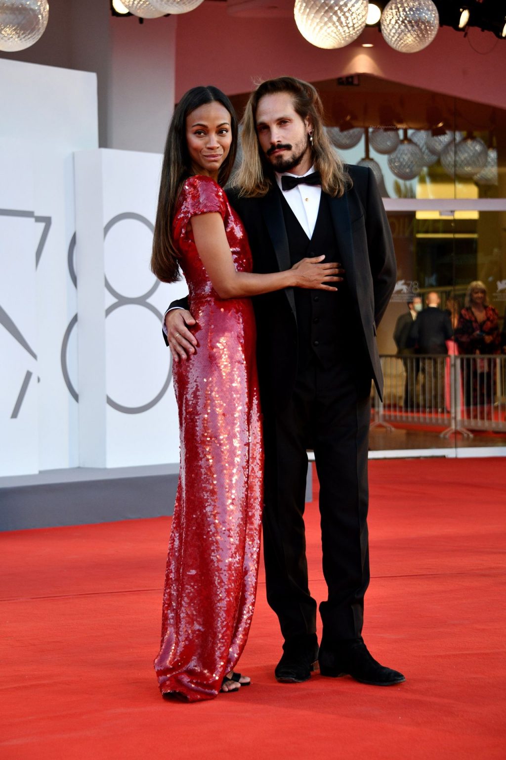 La actriz estadounidense/dominicana Zoe Saldana llega para la proyección de la película “E stata la mano di Dio” (La mano de Dios) presentada en competición durante el 78º Festival de Cine de Venecia en Venice Lido, 02/09/2021.