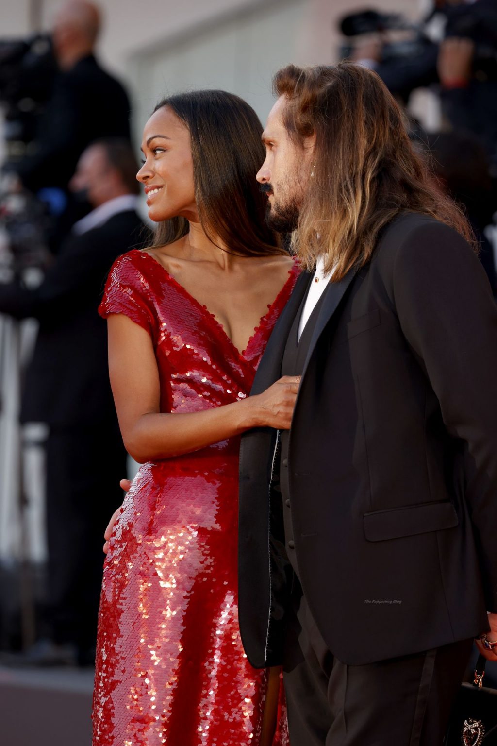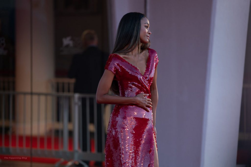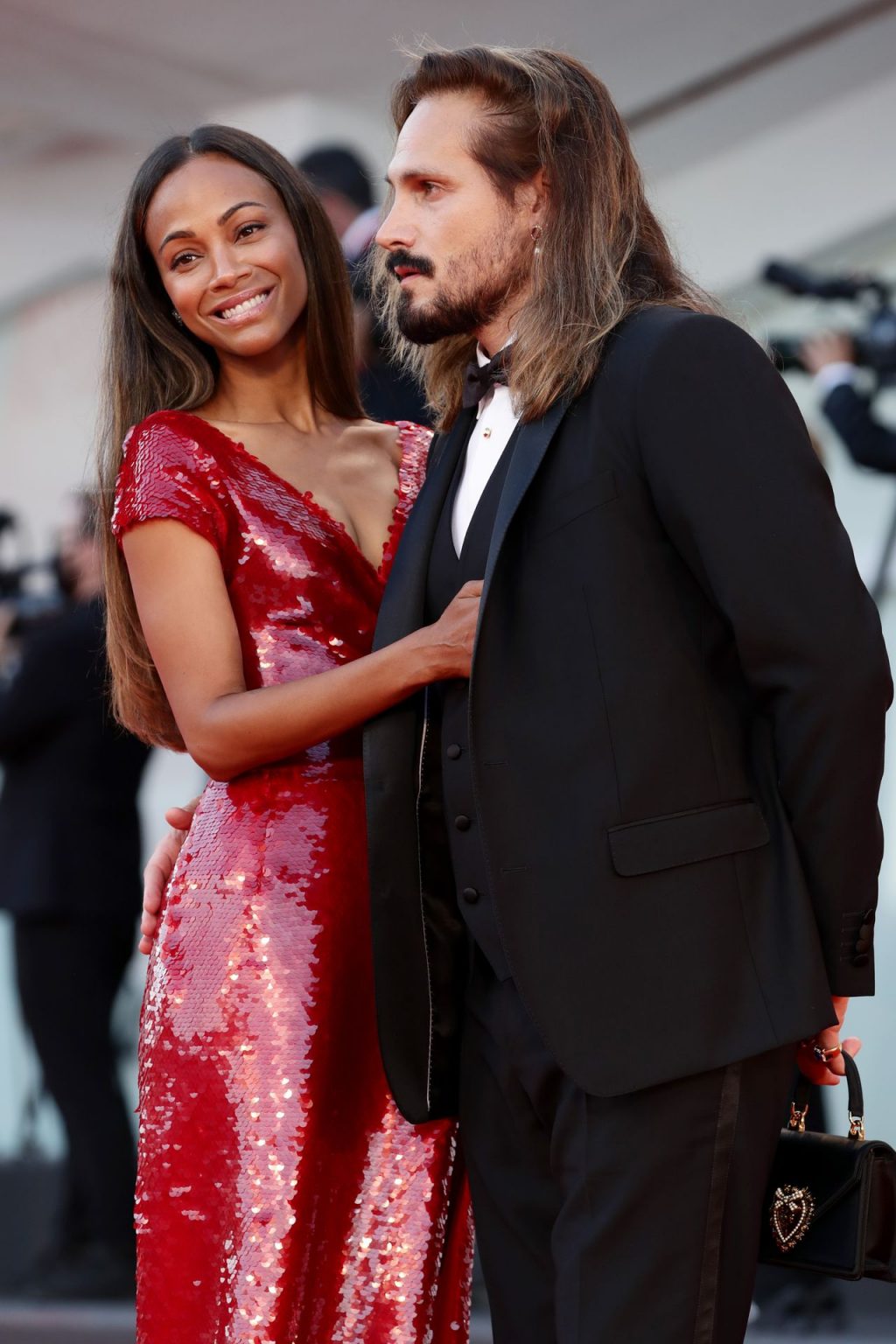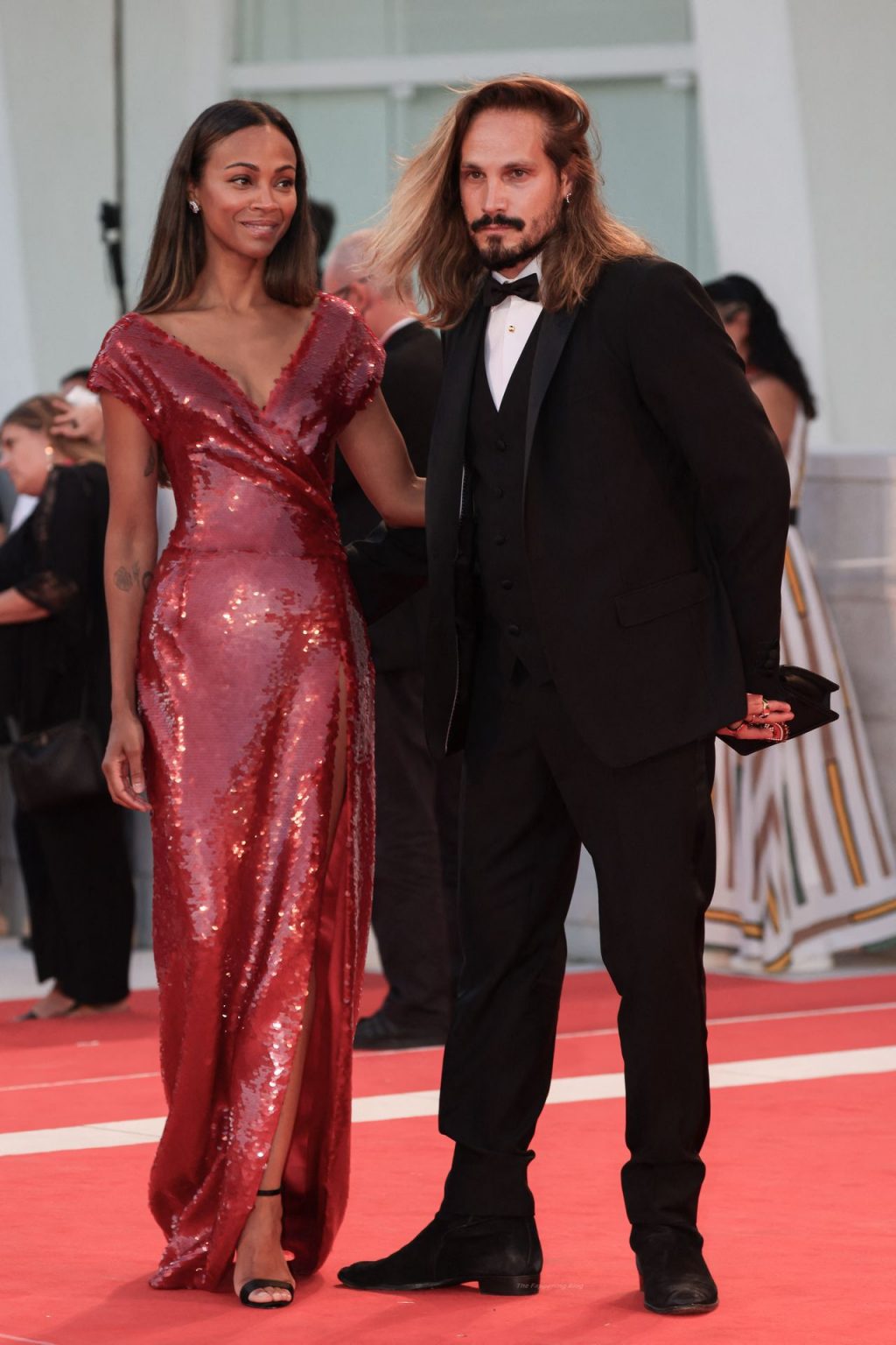 La actriz estadounidense/dominicana Zoe Saldana llega para la proyección de la película “E stata la mano di Dio” (La mano de Dios) presentada en competición durante el 78º Festival de Cine de Venecia en Venice Lido, 02/09/2021.